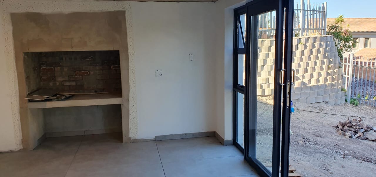 The main living level welcomes you with direct access from double garages, leading into a spacious open-plan living and dining area with an elevated ceiling that enhances the sense of calm and openness. The modern kitchen, complete with a separate scullery/laundry, is in its final stages, with kitchen cupboards scheduled for completion in January 2026.
