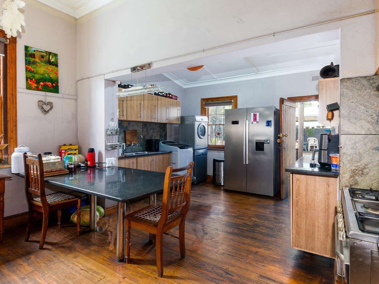 Discover this charming 3-bedroom, 1-bathroom residence with a full 1-bedroom flatlet nestled in Island Cove, Groot Brakrivier. Boasting a practical lounge / TV Room and a spacious kitchen, this property offers flexible living options, including a potential for extra income with the flatlet. The interior features inviting hardwood flooring and a cozy fireplace, creating a warm atmosphere. Outside, a well-maintained garden with lush landscaping, a private boundary wall, and a paved driveway with a secure access gate provide excellent curb appeal and four parking spaces. Enjoy scenic views and the practicality of water tanks and a Wendy house. Situated in a cul-de-sac near the coastal beach, this home is perfect as a holiday retreat or a permanent family residence. Pets are welcome.