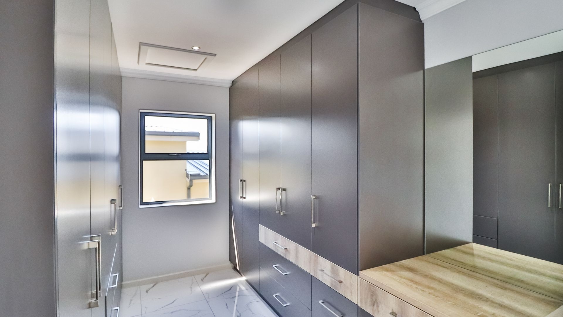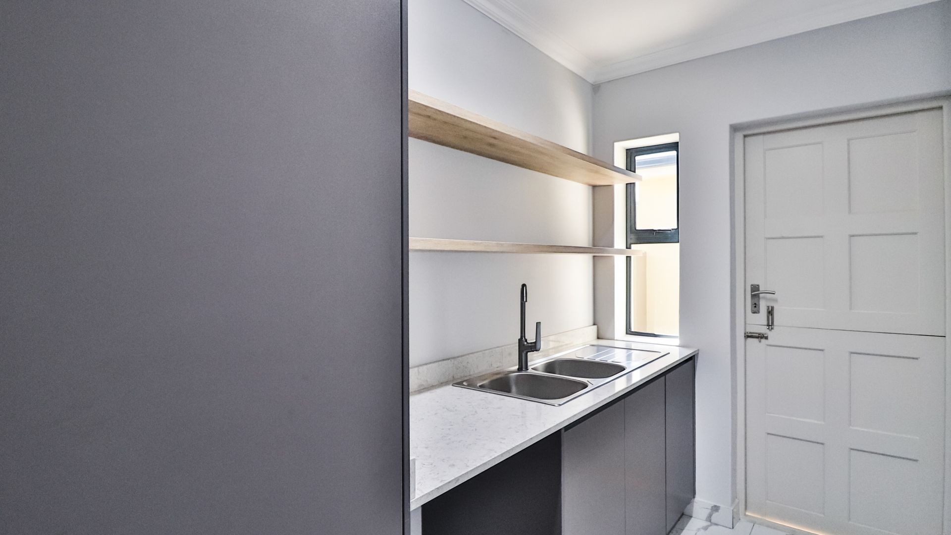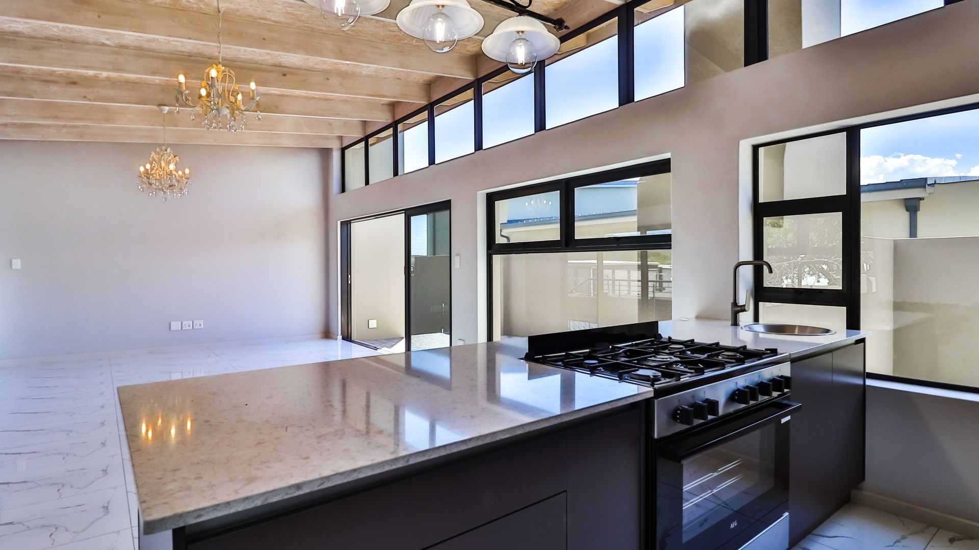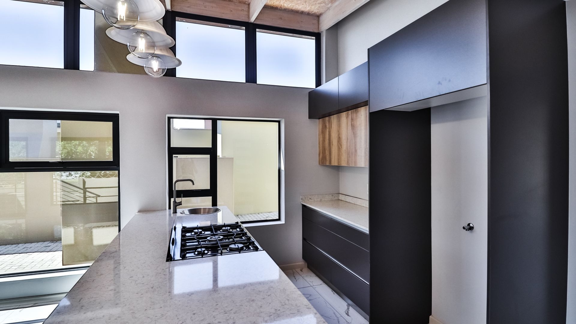 • Modern kitchen with gas stove, built-in cupboards, and granite tops.