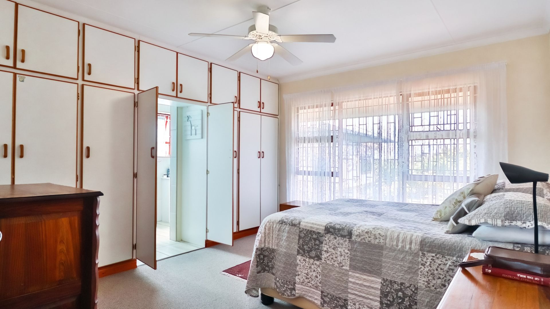The main house features three inviting bedrooms, each fitted with soft carpets, built-in cupboards, blinds, and burglar bars for added security.