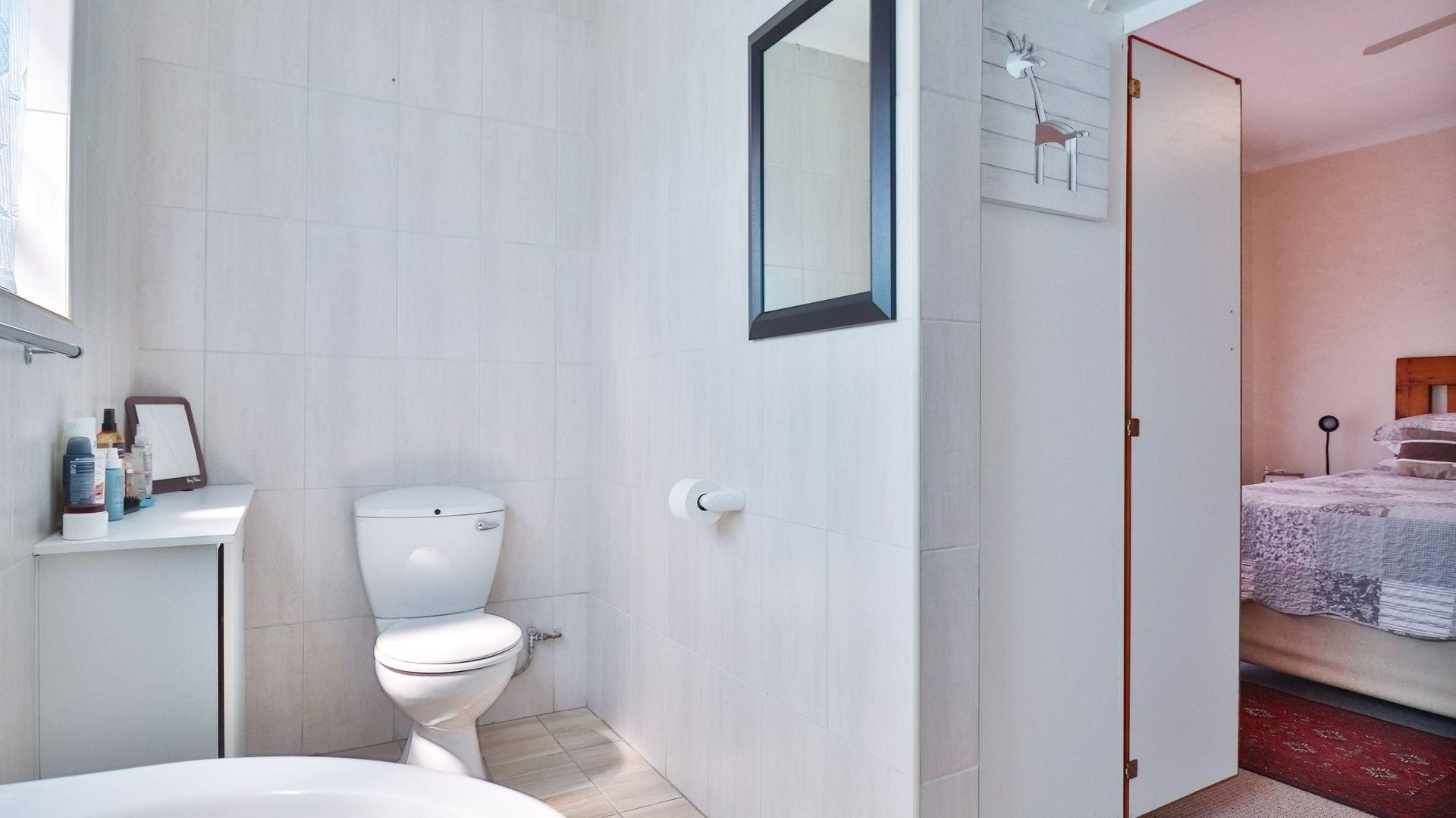 Die hoofhuis beskik oor drie ruim slaapkamers met matte, ingeboude kaste, vertikale blindings en diefwering. Die hoofslaapkamer het ’n privaat en-suite badkamer met stort, wasbak en toilet – netjies geteel. ’n Vol gaste badkamer sorg vir ekstra gemak vir familie en kuiergaste.