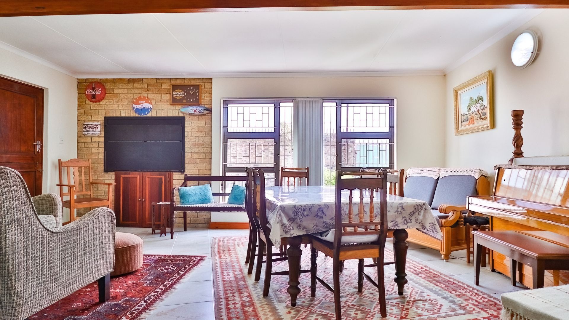 Die leefarea is ruim en oopplan, perfek vir gesinslewe en ontspanne saamwees. Die groot braaikamer met ingeboude braai, teëlvloer, blindings en toegang tot die patio via twee toegangs deure en ’n trellideur, maak dit ’n droom vir gesellige familie kuiers.