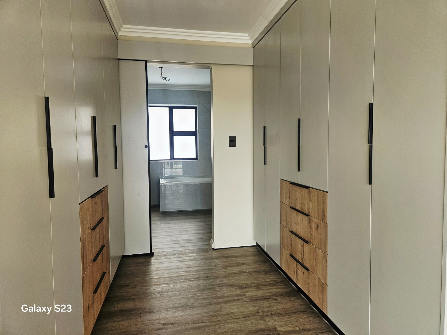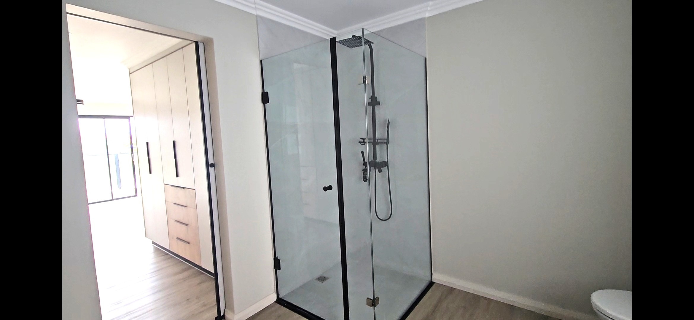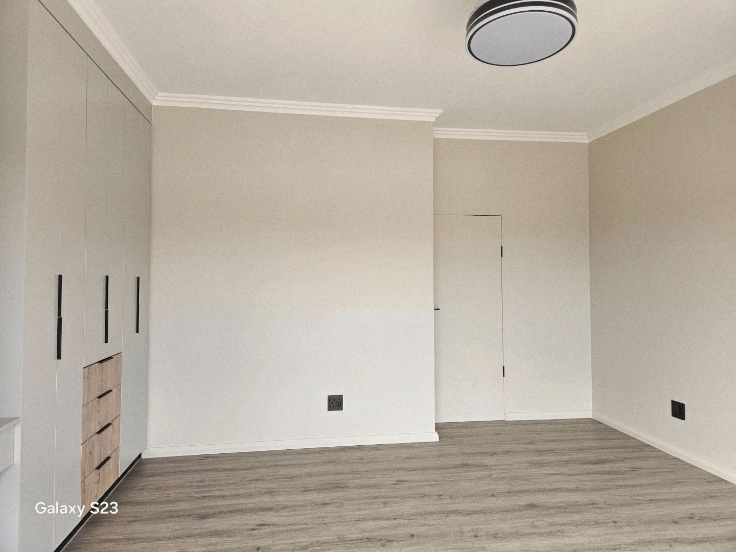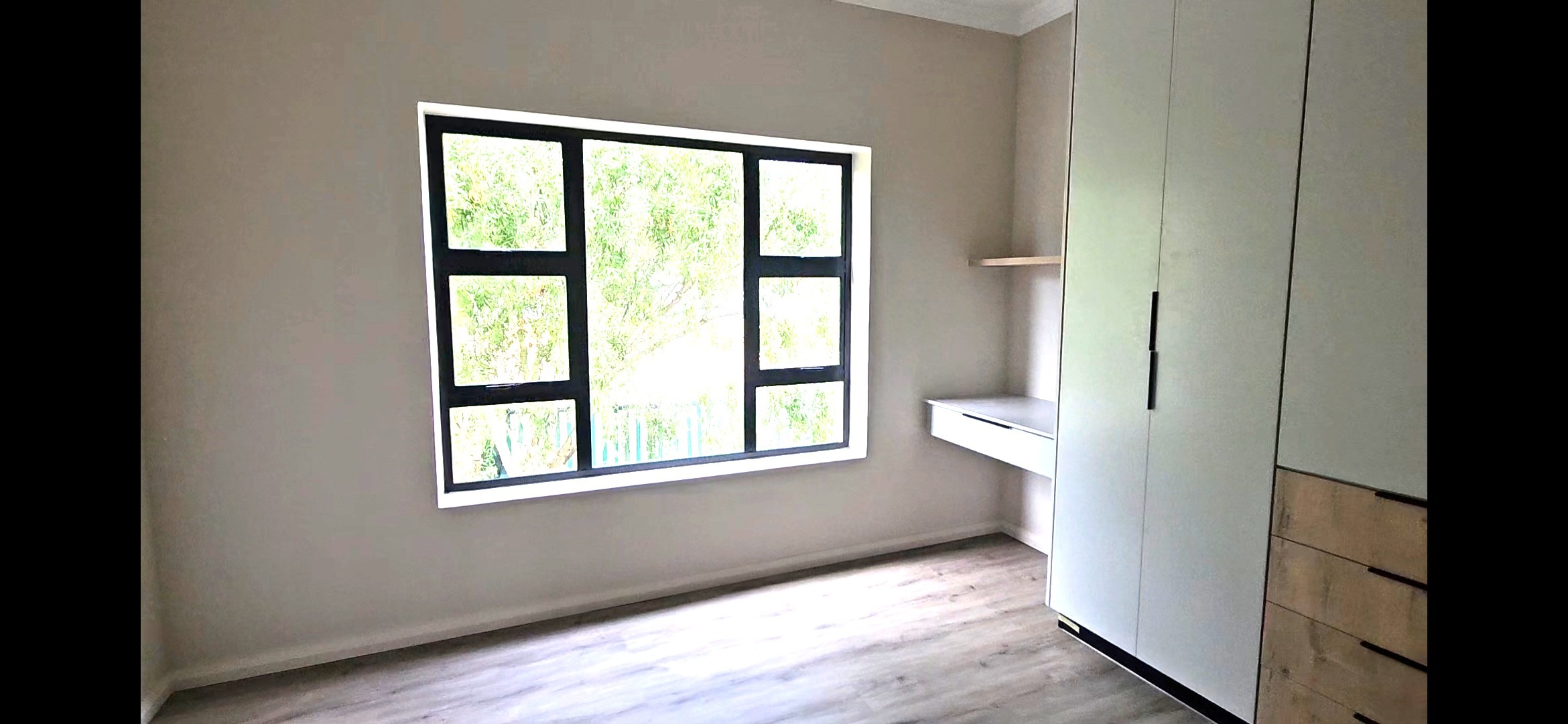 The built-in braai forms part of the open-plan living area and overlooks the river, making it ideal for relaxed entertaining with family and friends. The tandem garage comfortably accommodates two vehicles and is fitted with a high-quality belt-driven, dust-proof garage door. Soundproof windows ensure a peaceful indoor environment.