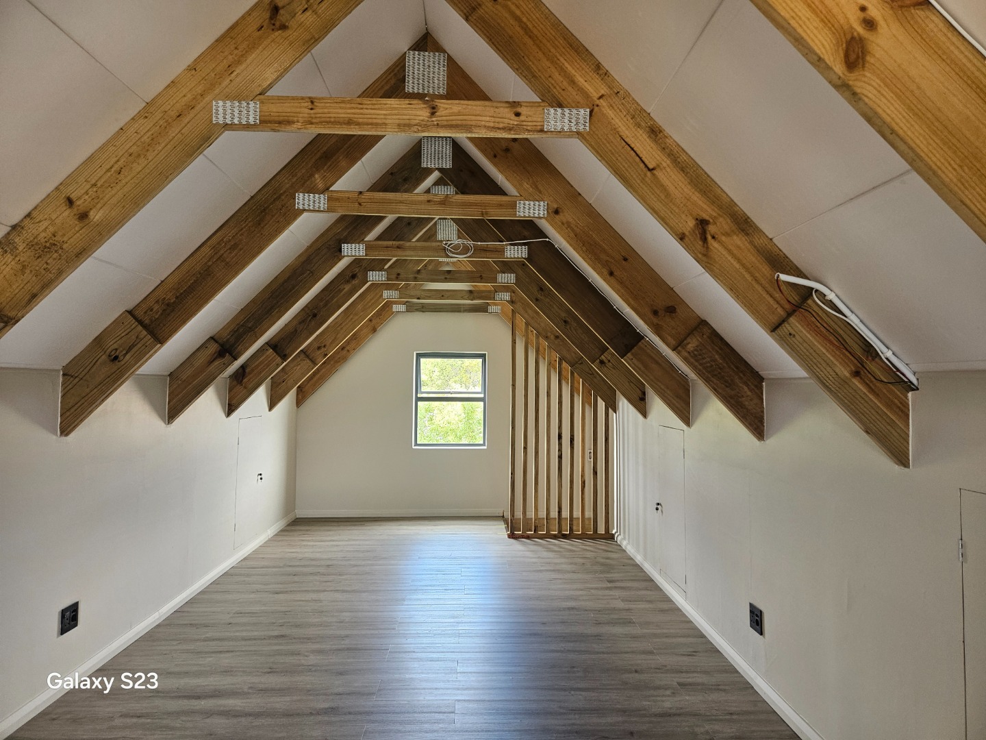 A large 60 m2 loft area provides versatile additional space, suitable for extra holiday sleeping arrangements, a study, or storage.