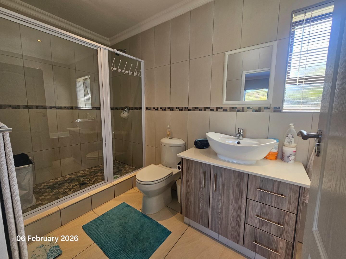 Inside the estate, residents can walk their dogs in a safe, green environment. There is a communal swimming pool, 24-hour security, and even access to a professional biokinetics on the property. The location is close to Salt and Copper, Hart en Bosch Village, and the BP Garage, with the new Hartenbos Mall opening within three months. It is only a seven-minute drive to Hartenbos Main Beach, primary schools, and other amenities. Two new private schools are also being established nearby, adding further value for families.