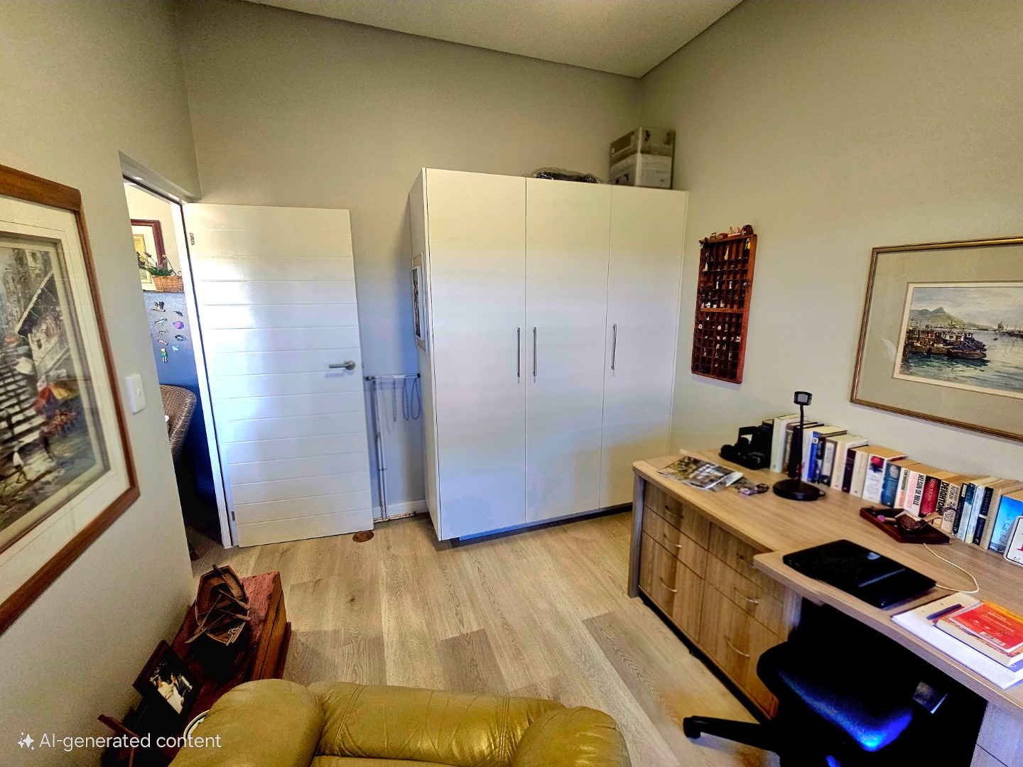 Ontwerp met pragtige vloere, ekstra kaste en blindings
