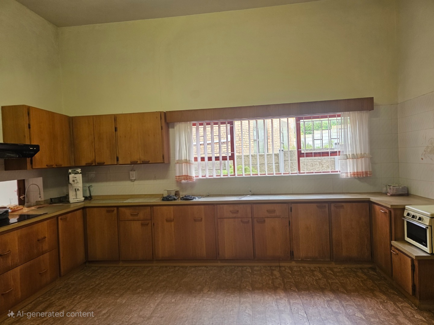 Large kitchen with separate scullery, offering functionality and room to upgrade with a breakfast nook with a beautiful sea view.