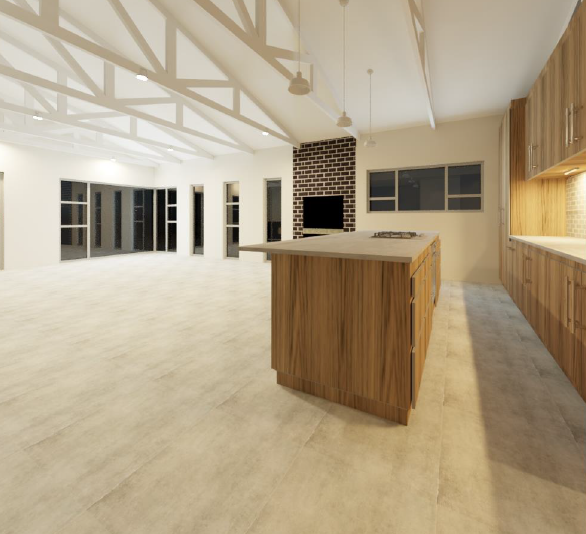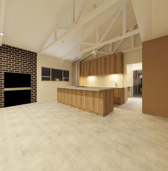 • Exposed trusses for light, airy living spaces