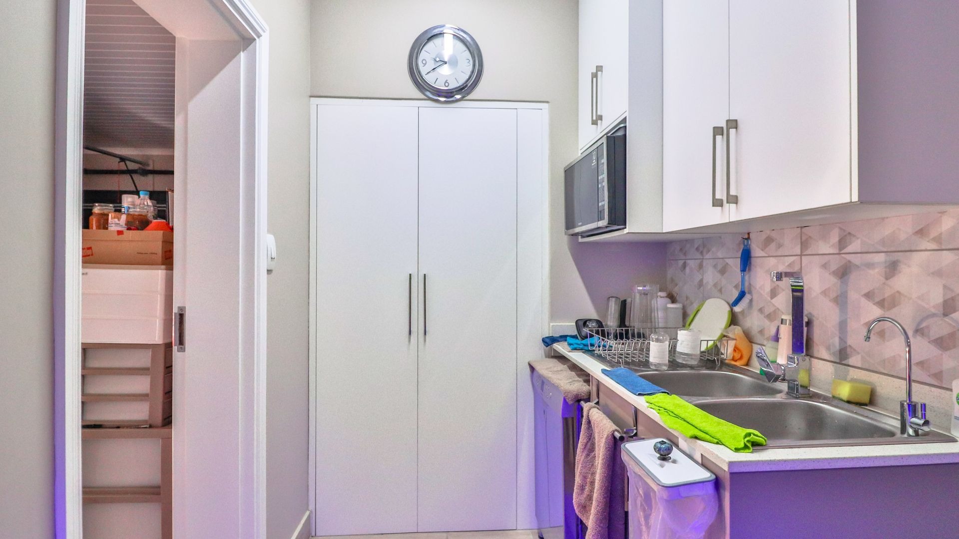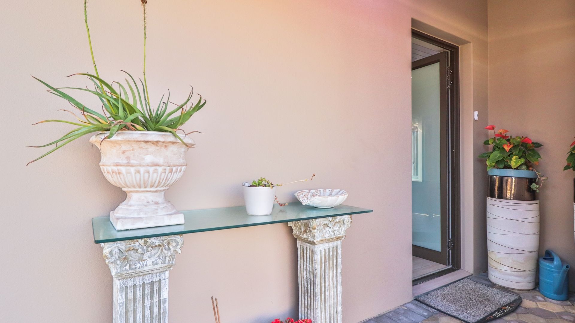 - Double garage with built-in cupboards, space for laundry appliances, and direct access to both the kitchen and private courtyard.