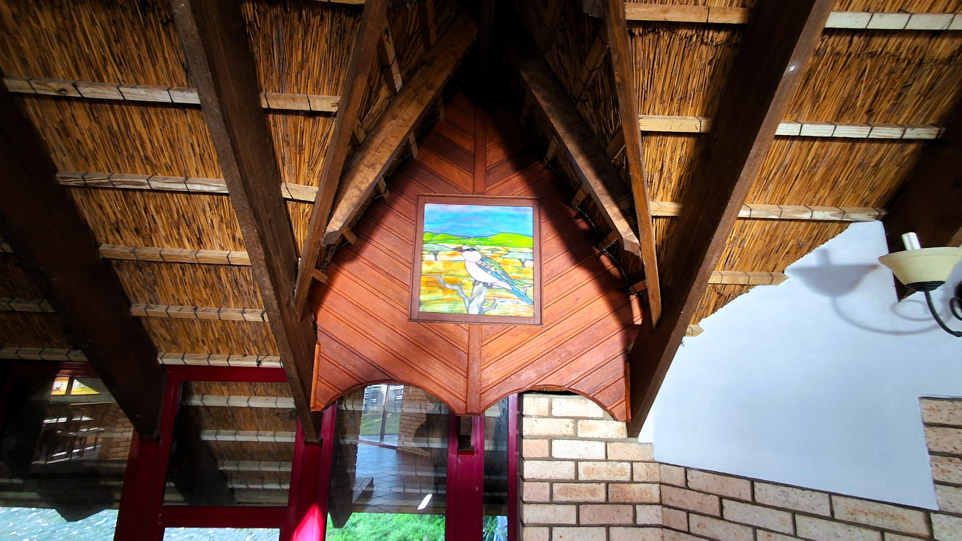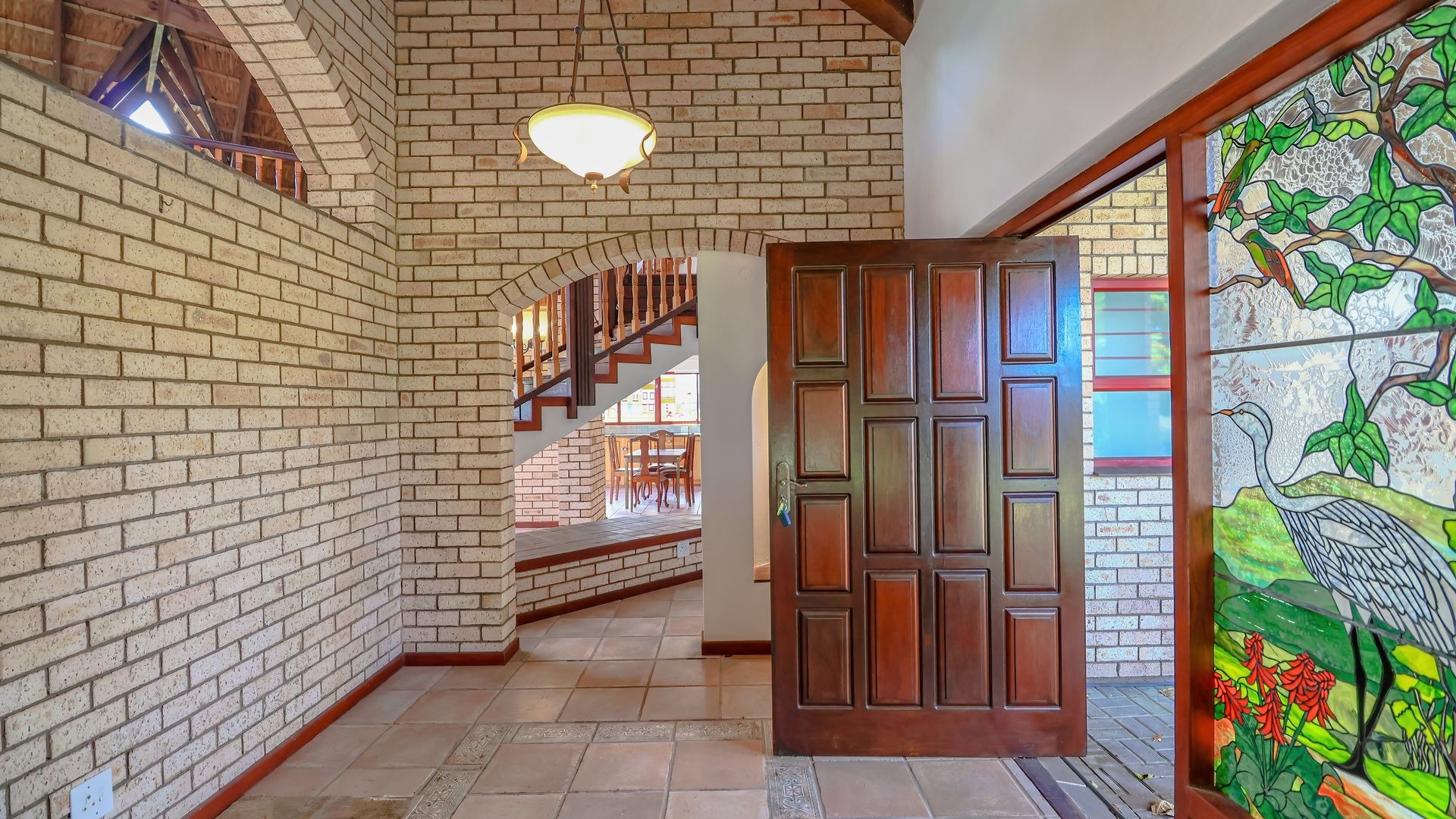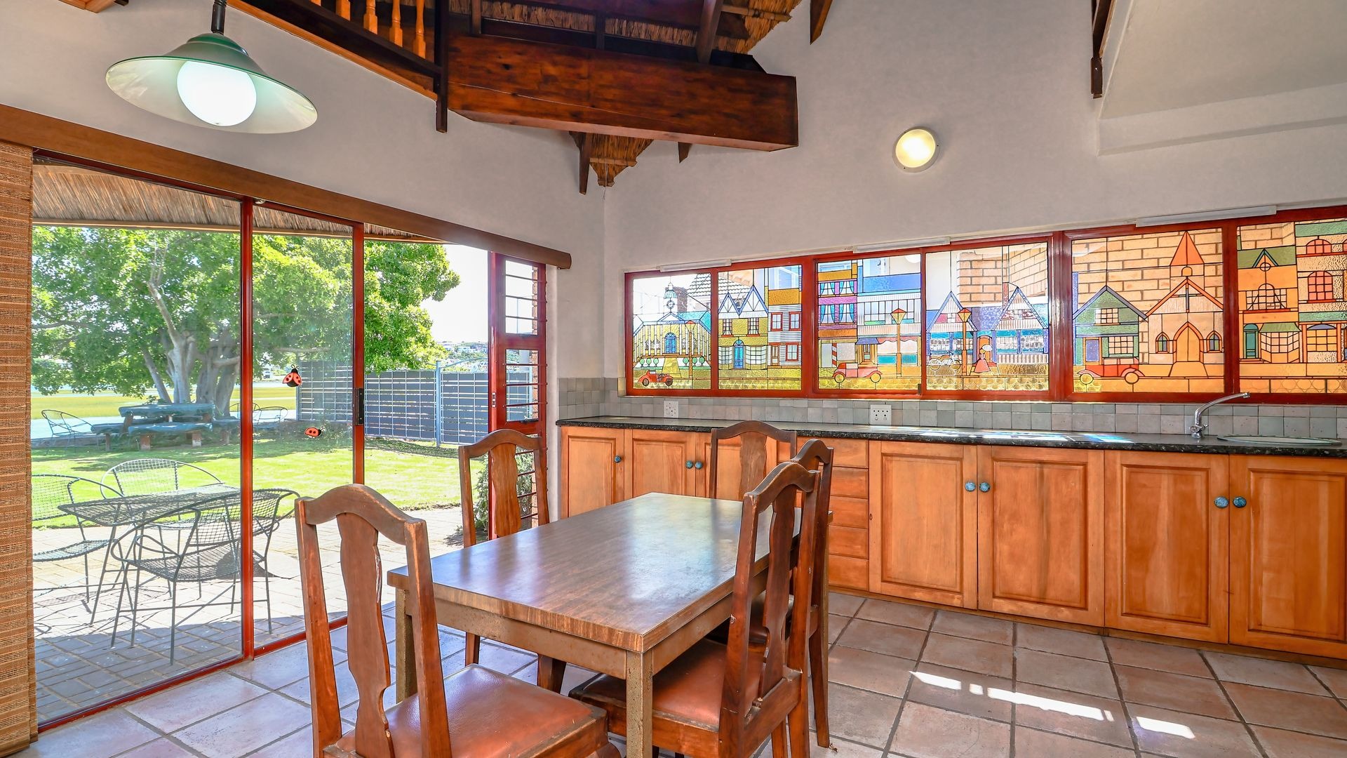 This exquisite converted thatched-roof residence on the Goukou River blends craftsmanship, character, and comfort in every detail. From the railway sleeper staircase and solid Pamavin and Imbuia balustrade to the artistic stained-glass windows and expansive living spaces, this home is designed to impress.