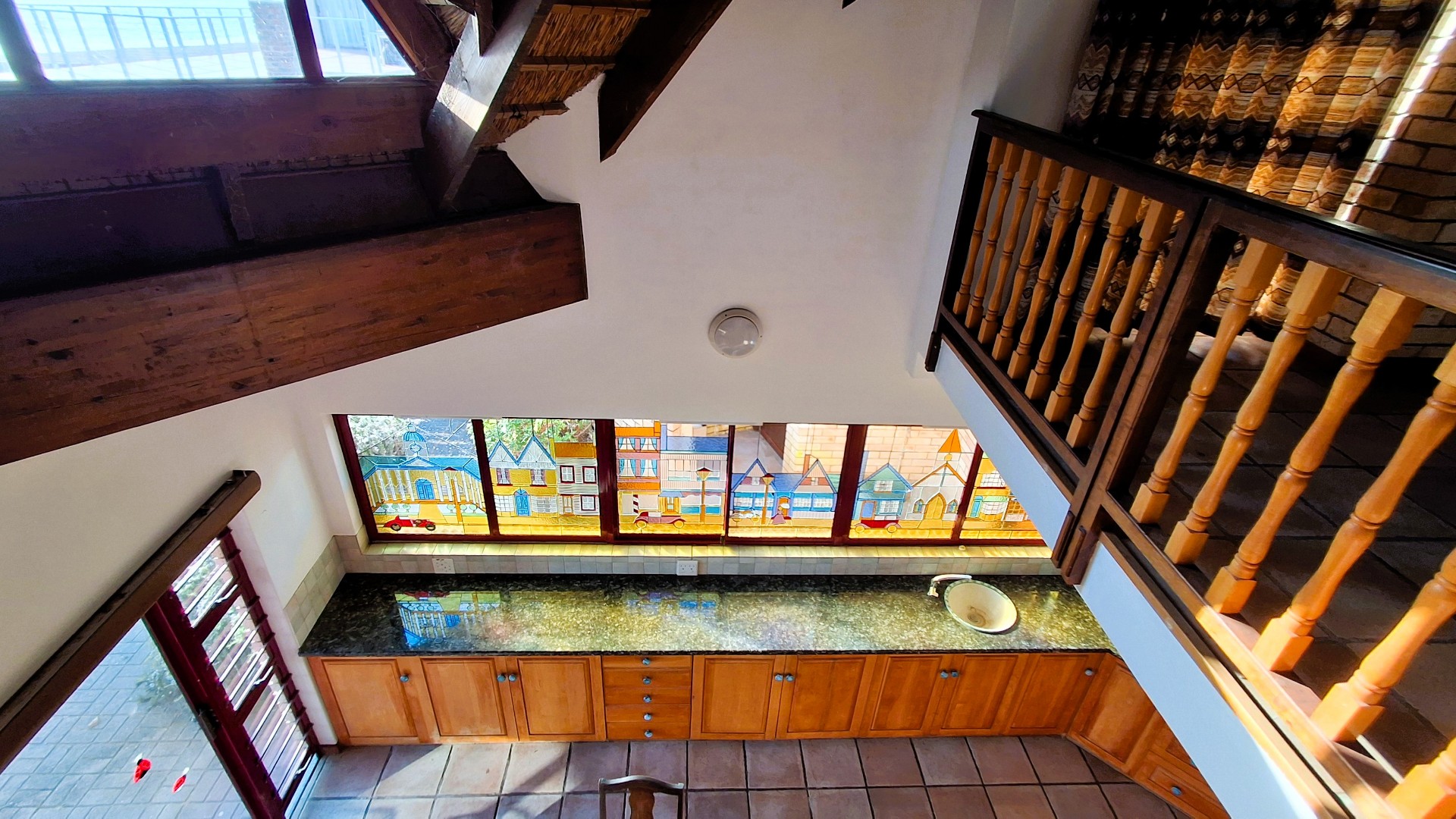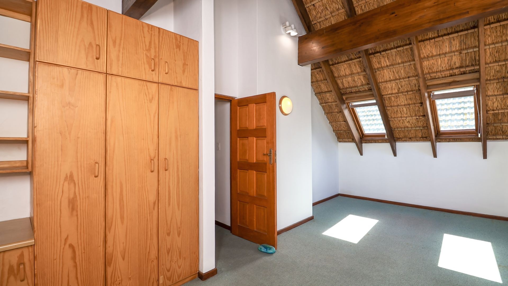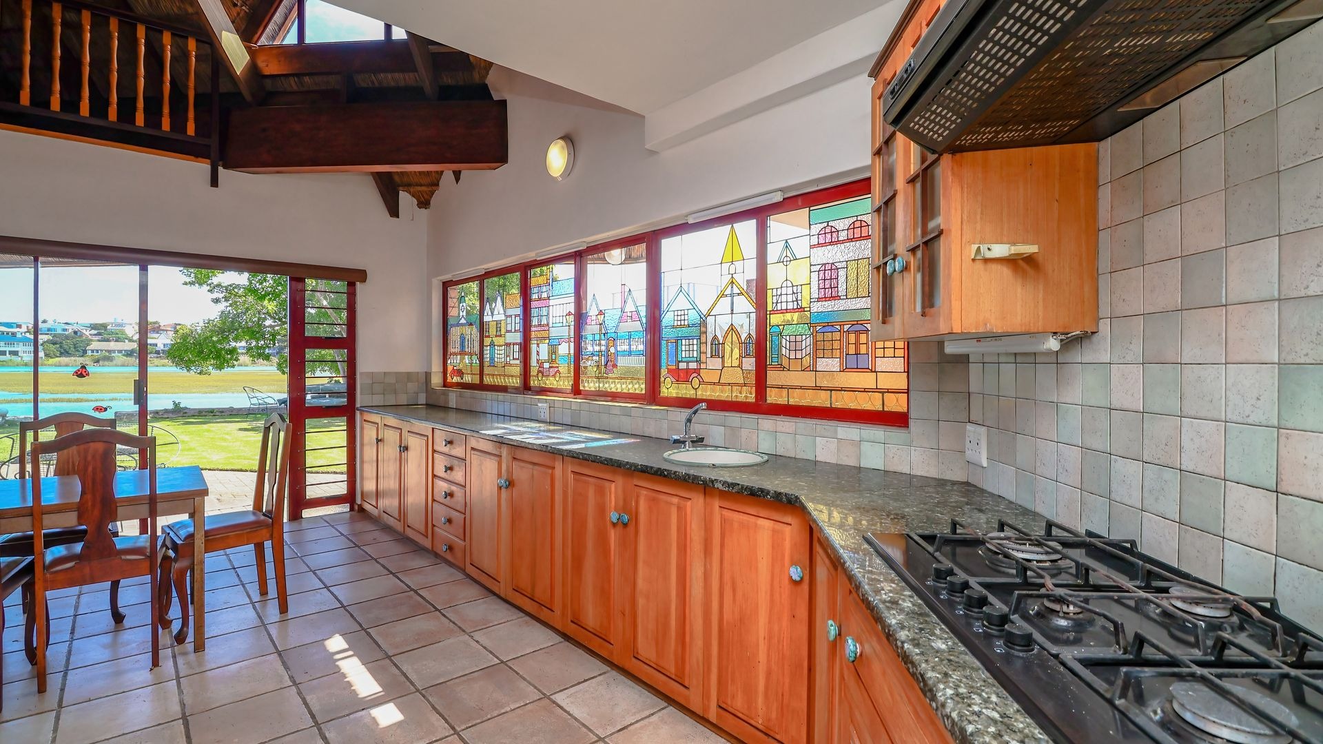 This exquisite converted thatched-roof residence on the Goukou River blends craftsmanship, character, and comfort in every detail. From the railway sleeper staircase and solid Pamavin and Imbuia balustrade to the artistic stained-glass windows and expansive living spaces, this home is designed to impress.