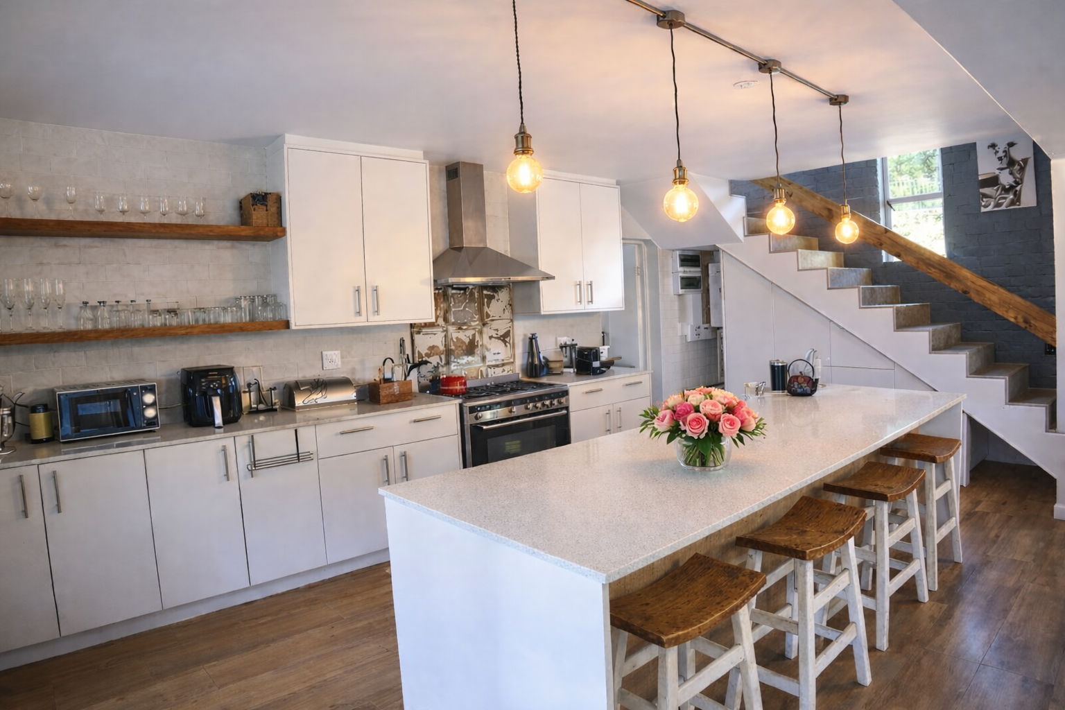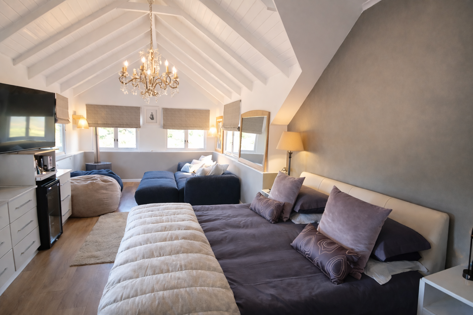 A distinguished feature of the property is its collection of four fully appointed luxury guest suites, offering immediate boutique hospitality potential or exclusive accommodation for family and visitors. Each suite is elegantly designed with en-suite bathrooms, kitchenettes, and private outdoor spaces, with select units enjoying uninterrupted river views. These residences are offered fully furnished, allowing for a seamless transition into a luxury guesthouse or curated retreat experience.