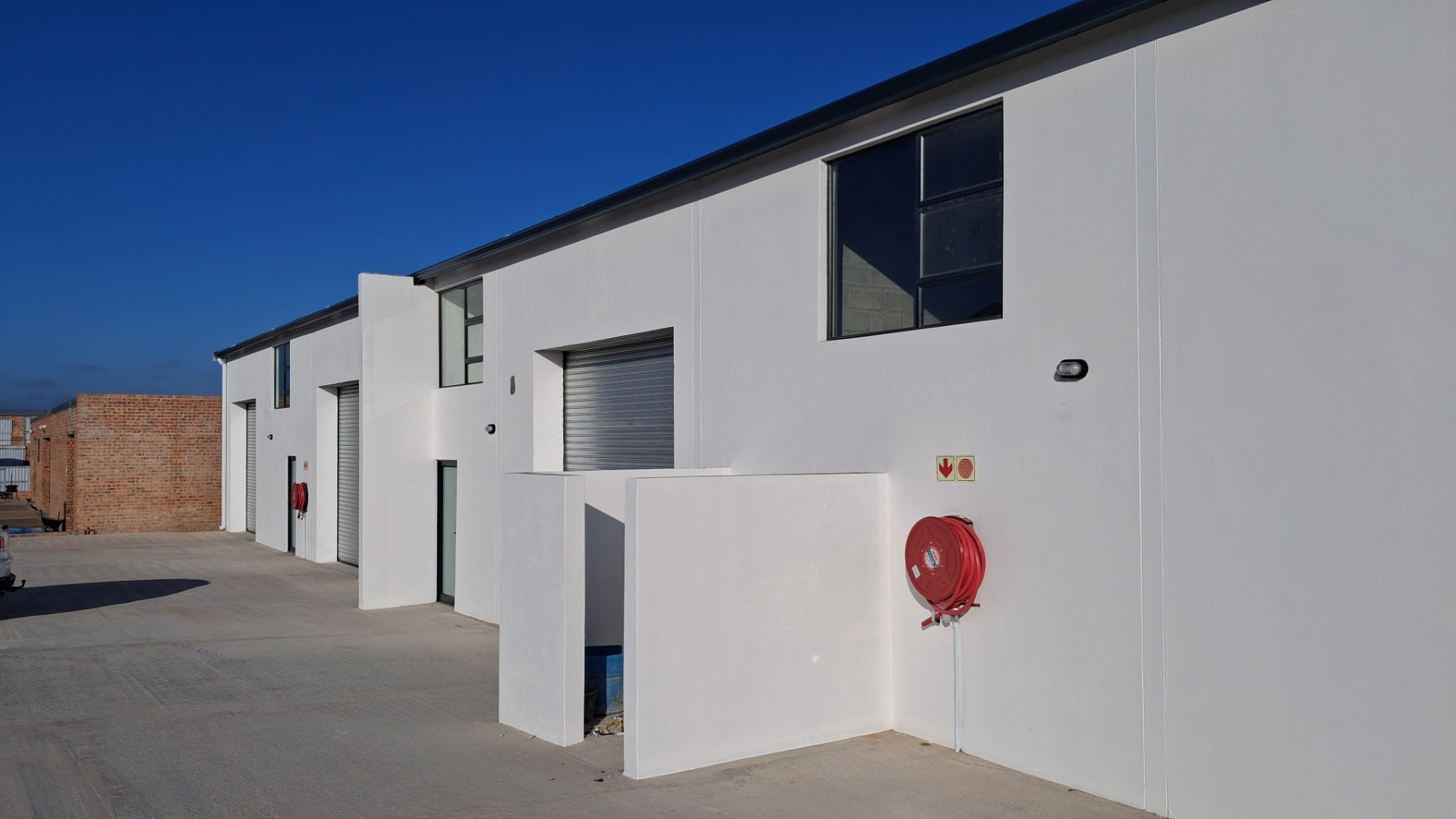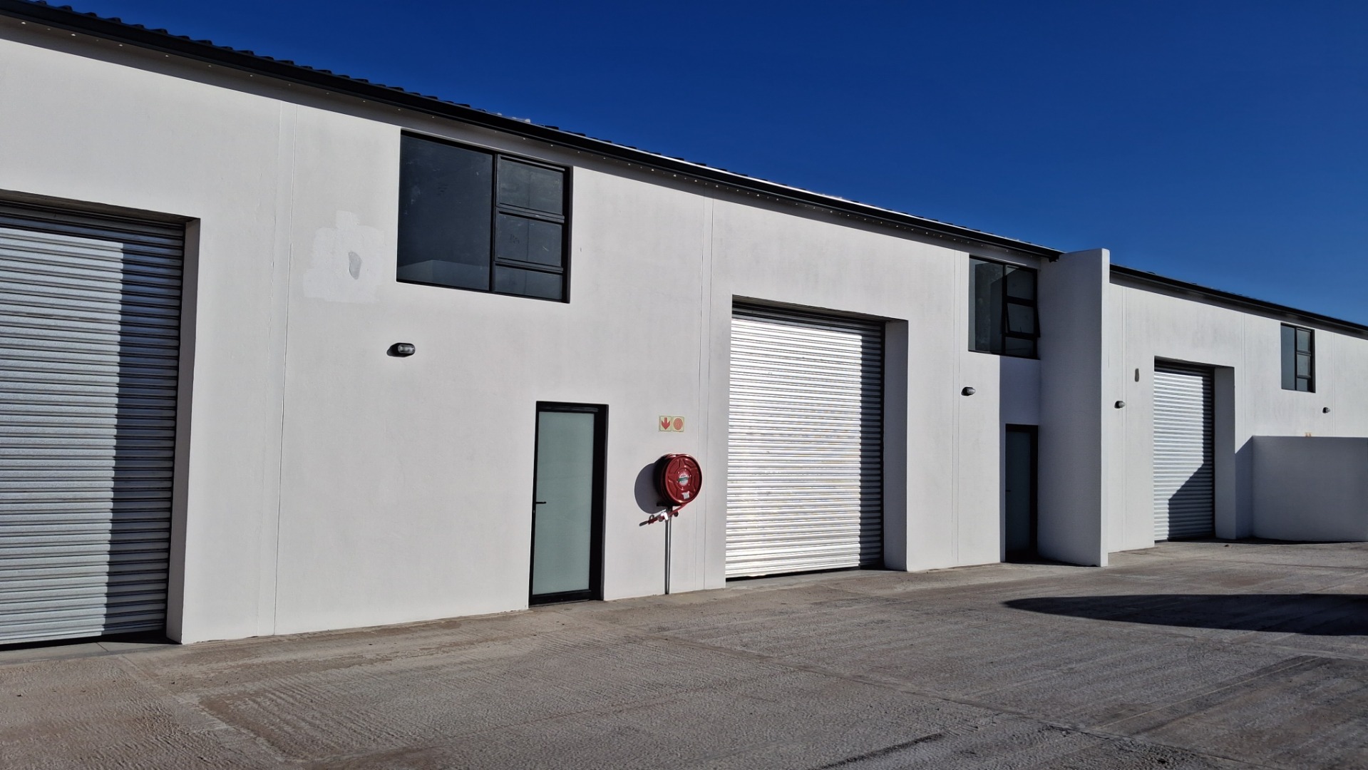 This modern commercial property offers an excellent opportunity for businesses seeking versatile industrial or light commercial space in Stilbaai Oos. The development features a contemporary design with clean white facades, contrasting dark trim, and green corrugated roofing, presenting a professional and inviting appearance. Spanning a generous Erf Size of 525.00 sqm with a Floor Size of 180.00 sqm, this property is designed for optimal functionality. Each unit boasts large roller shutter doors for easy vehicle access and efficient loading, complemented by separate pedestrian entrances. The interior includes a practical kitchen and a bathroom, catering to essential business needs. Upper-level windows ensure ample natural light, ideal for office or administrative areas. A paved forecourt provides substantial parking and loading space, enhancing operational flow. This multi-unit configuration offers significant investment potential, suitable for various business types or as a multi-tenant income-generating asset. Its modern infrastructure and adaptable spaces make it an attractive proposition for entrepreneurs and investors in the South African commercial real estate market. Prioritising efficiency and sustainability, the property is equipped with visible solar panels on the roof, indicating a commitment to energy-saving solutions. Fire safety equipment is strategically placed for compliance and peace of mind. The well-maintained paved access ensures smooth entry and exit, providing a secure environment for commercial operations. Located in Stilbaai, this property benefits from its position within a vibrant South African coastal town. The region offers a blend of commercial activity and a desirable lifestyle, making it an appealing location for business establishment and growth. Key Features: * Modern multi-unit commercial property * 180 sqm floor size on 525 sqm erf * Large roller shutter doors * Separate pedestrian access * Equipped with solar panels * Paved parking and loading areas * Includes 1 bathroom and 1 kitchen * Ideal for various business operations
