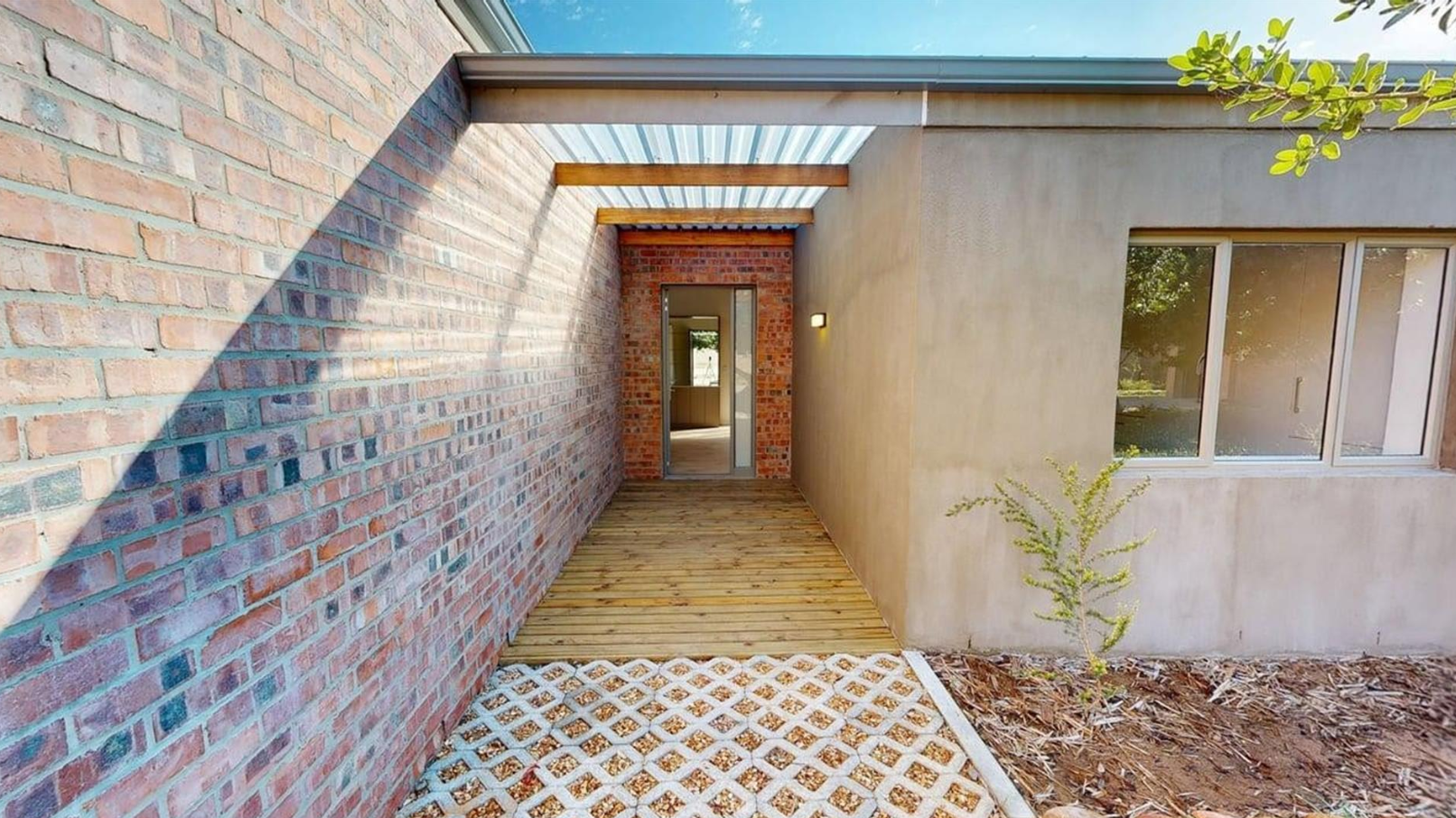 Gas geyser and backup water system included Communal greenbelt space for residents.