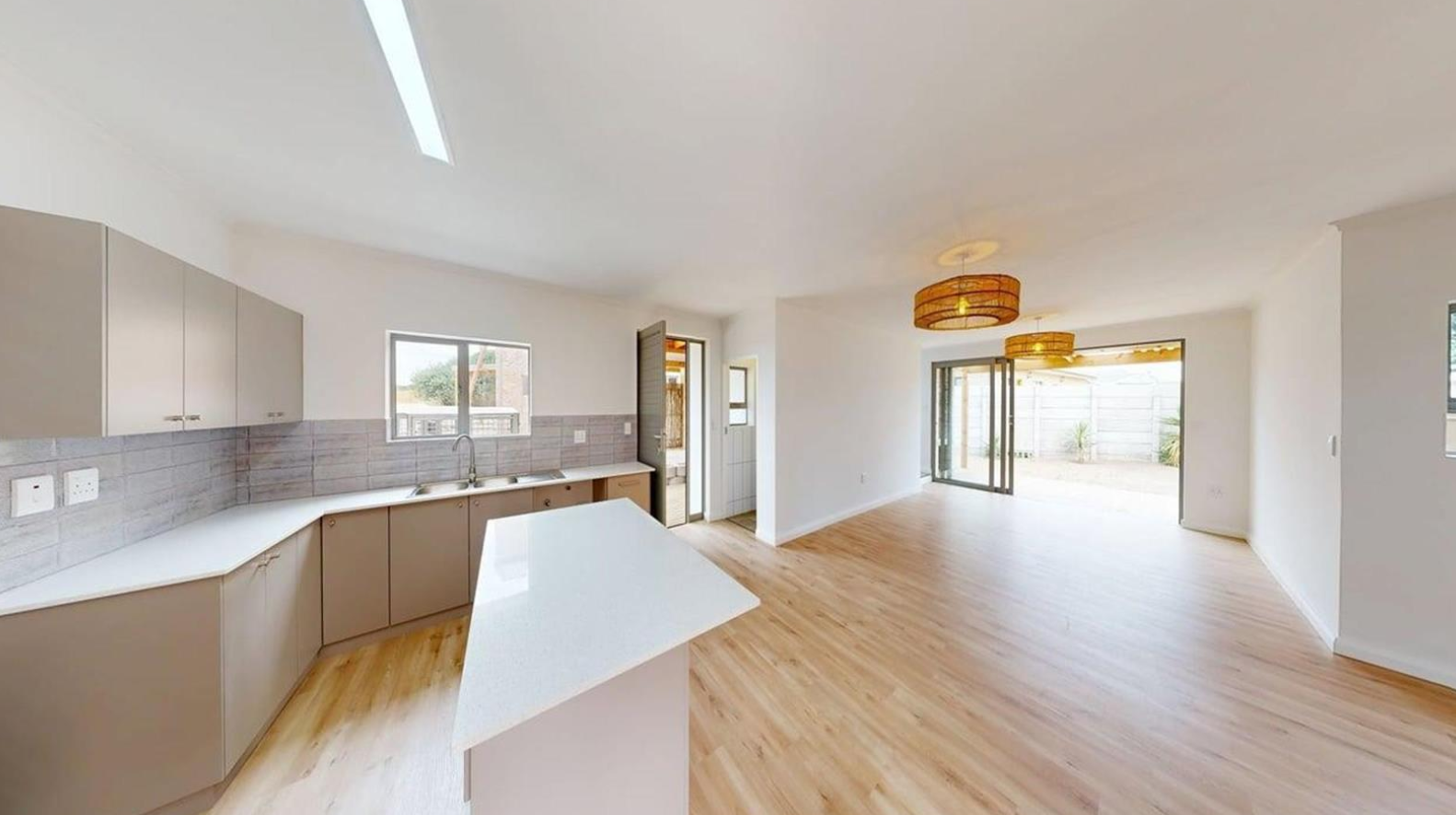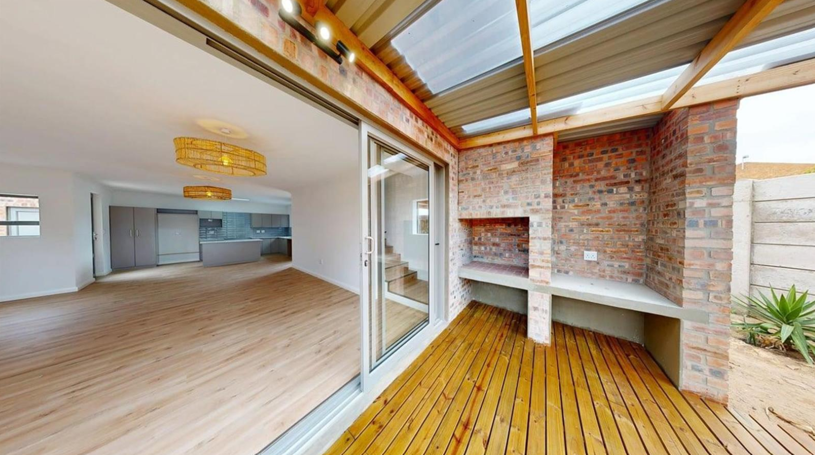 A guest toilet downstairs adds extra convenience for visitors.The open-plan kitchen, dining, and lounge area is bright and welcoming, perfect for easy everyday living. Sliding doors lead to a covered outdoor braai area, ideal for entertaining and soaking up Stilbaai's relaxed coastal lifestyle.