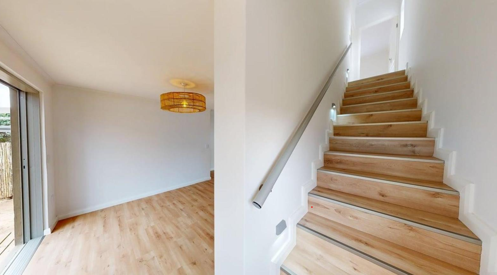 This modern residence boasts two spacious bedrooms upstairs, each with its own en-suite bathroom, offering comfort, privacy, and pleasant views.