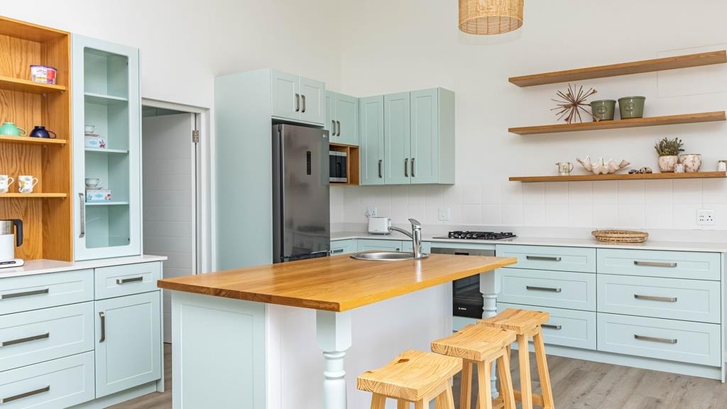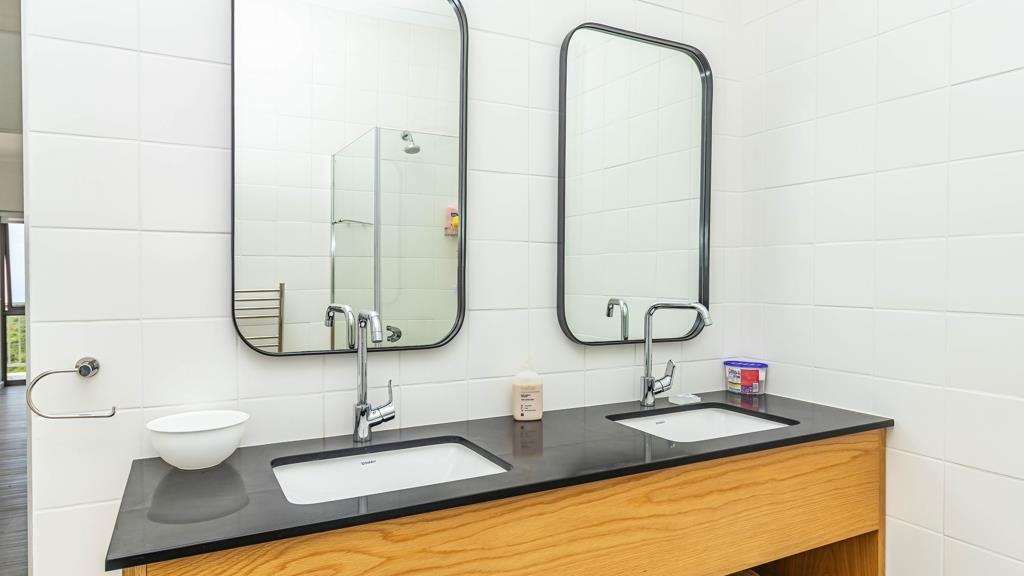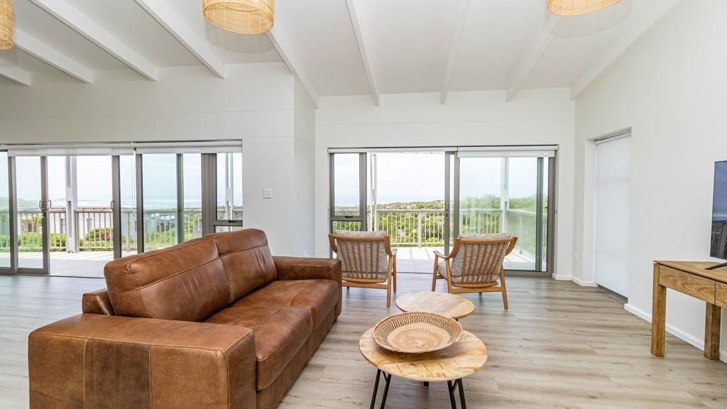 The spacious open-plan living, dining, and kitchen area is designed to maximize natural light and coastal vistas, creating an inviting space for both everyday living and effortless entertaining. A separate scullery adds valuable convenience and functionality.