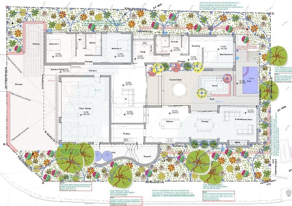 Professionally planned fynbos landscaping with rehabilitated indigenous plants