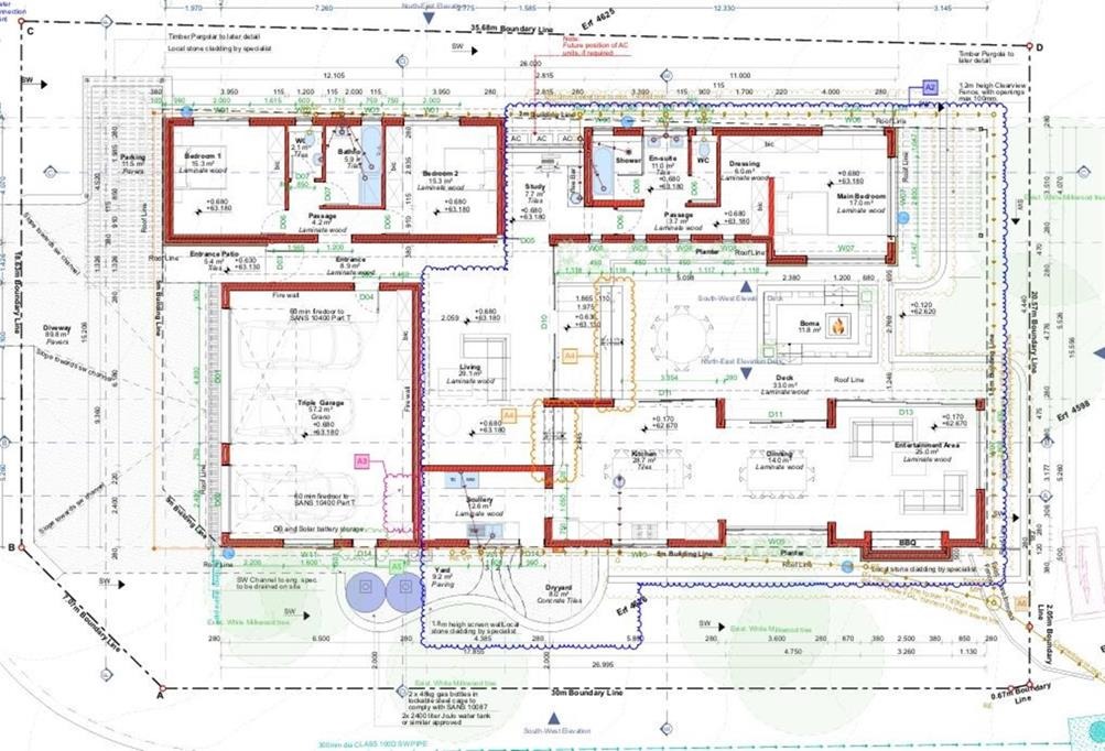 The residence features 254 m² of modern living space, a 66 m² triple garage, and expansive indooroutdoor entertainment areas including a covered deck, boma, and built-in braai. The home is future-ready with solar panels, inverter and battery system,2 gas geyser, and rainwater tanks, ensuring efficiency and peace of mind.
