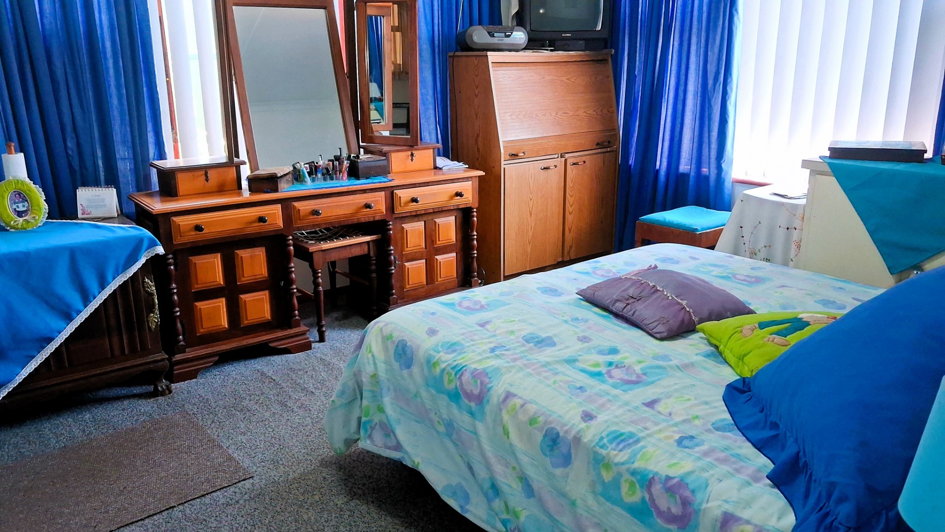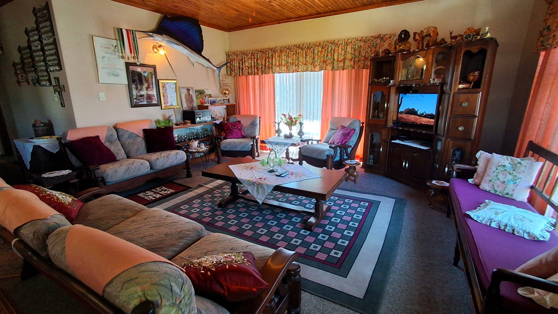 Step inside and you’ll immediately feel at home. The spacious open-plan lounge, dining, and kitchen area welcomes you with warm knotty-pine ceilings and plenty of natural light. The well-appointed kitchen features a classic wood finish, a breakfast nook for quick family meals, and an easy flow into the living area. Sliding doors open onto a sunny patio — the perfect spot for morning coffee or a quiet read.