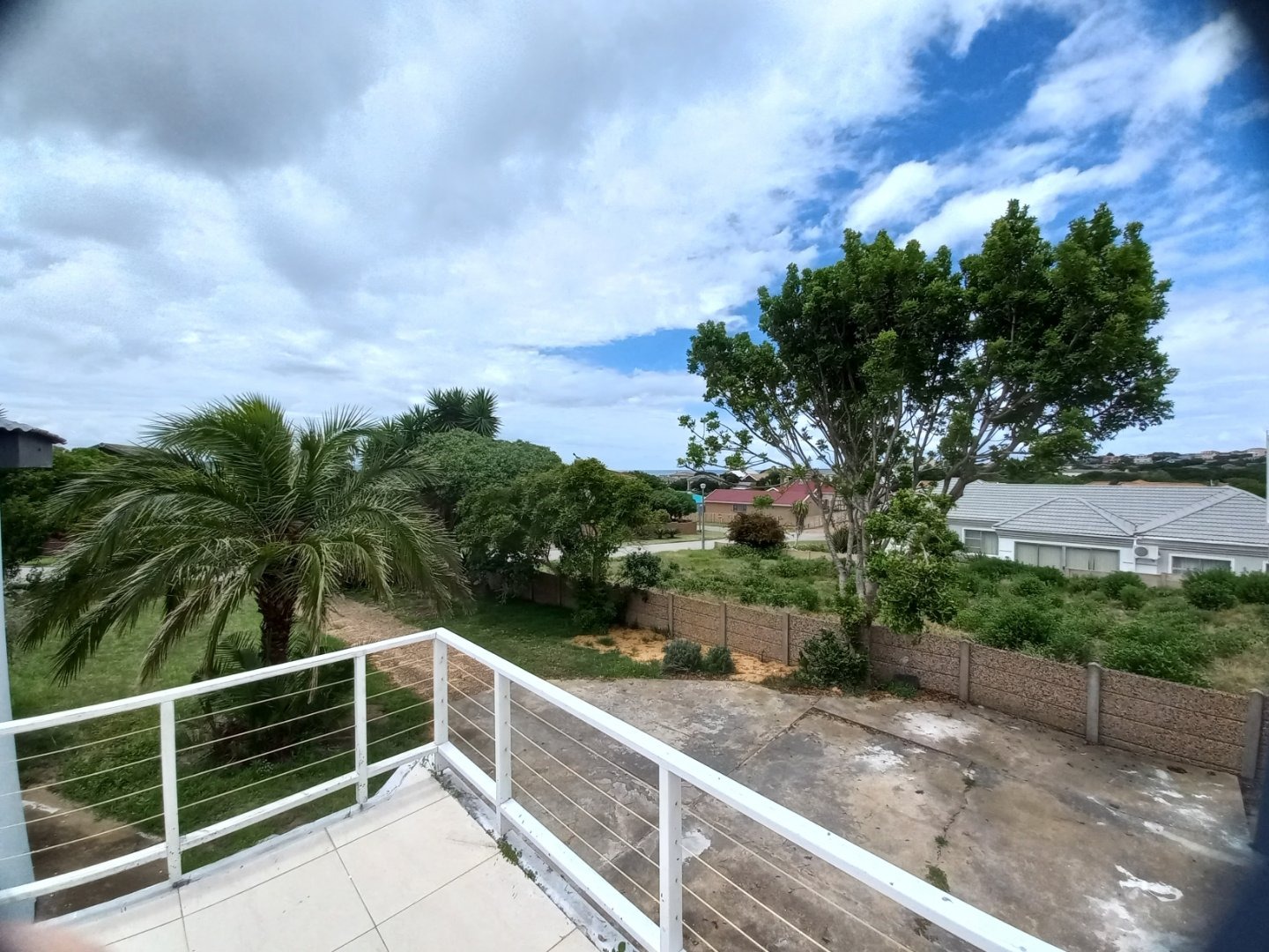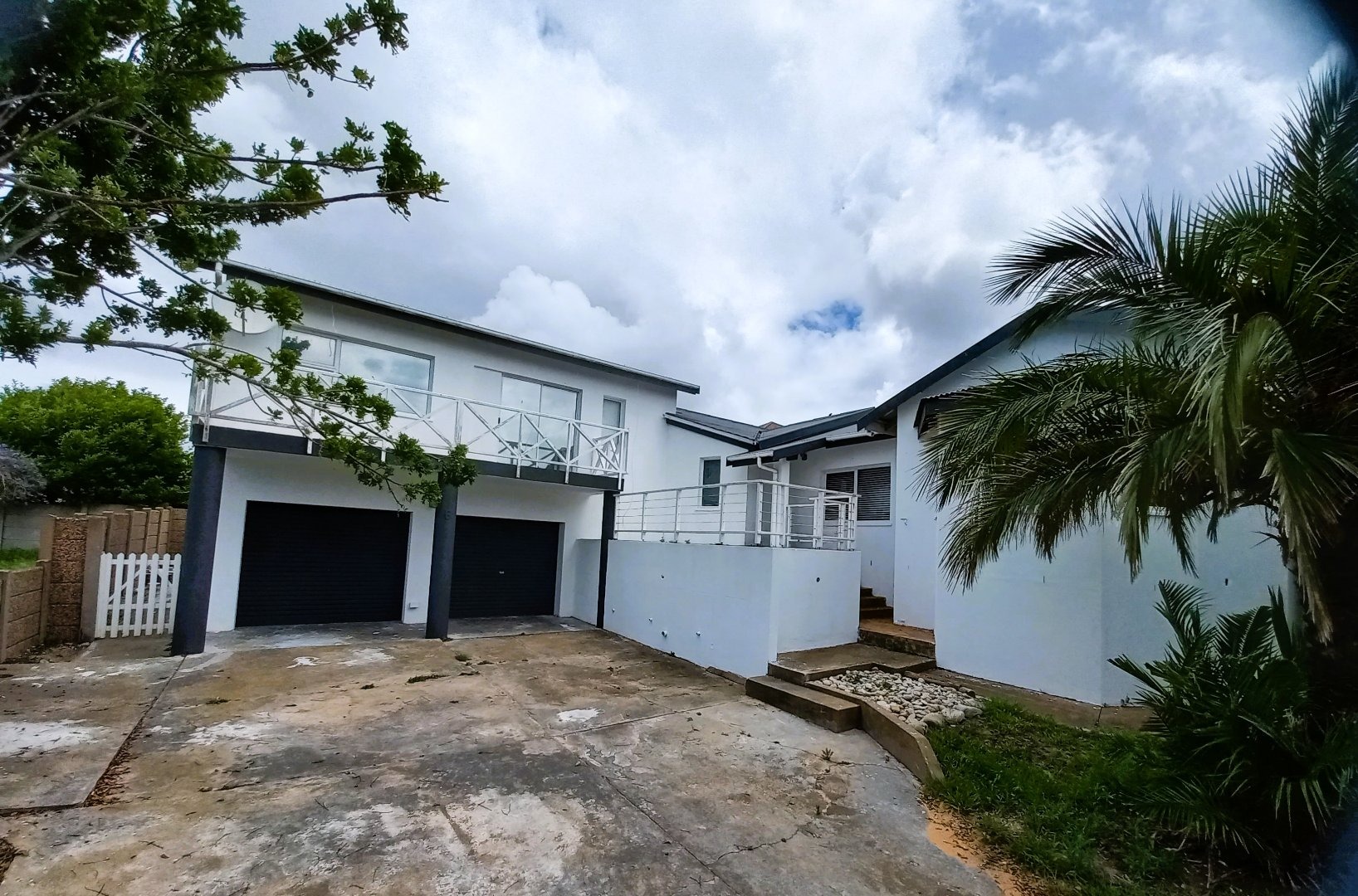 This two-story residence in Stilbaai Wes offers a compelling opportunity for coastal living. The exterior features a clean white and dark grey aesthetic, complemented by a double garage and an inviting upper-level balcony. While the corrugated metal roof adds character, the property presents a canvas for personalization, with some landscaping and driveway areas ready for a refresh to enhance its kerb appeal.