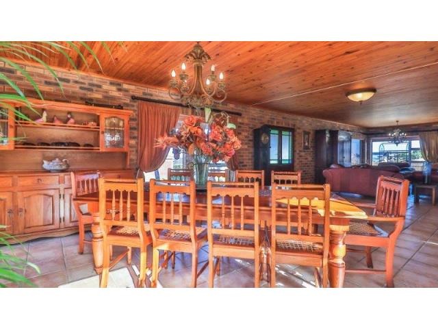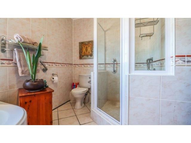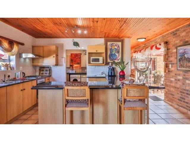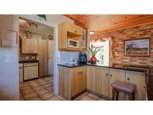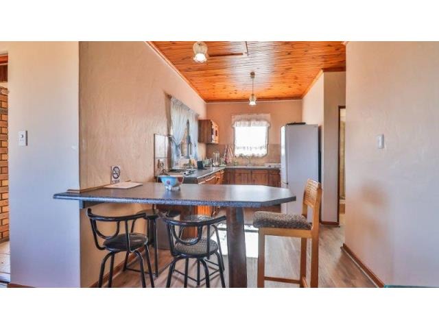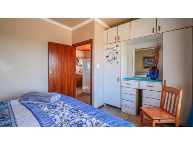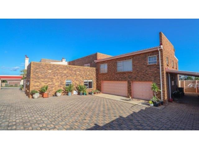 Upstairs, the main suite and a cosy TV lounge flow onto a view-filled balcony. Downstairs, the expansive open-plan living area includes a fireplace, modern kitchen with scullery, and a sunny entertainment space with a built-in gas braai and swimming pool. This versatile home combines space, privacy, and prime positioning—perfect for those seeking a flexible lifestyle property in the heart of Stilbaai.