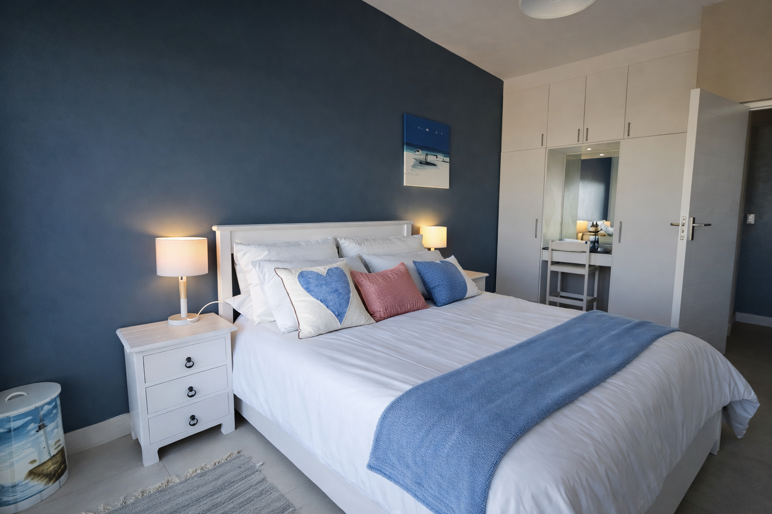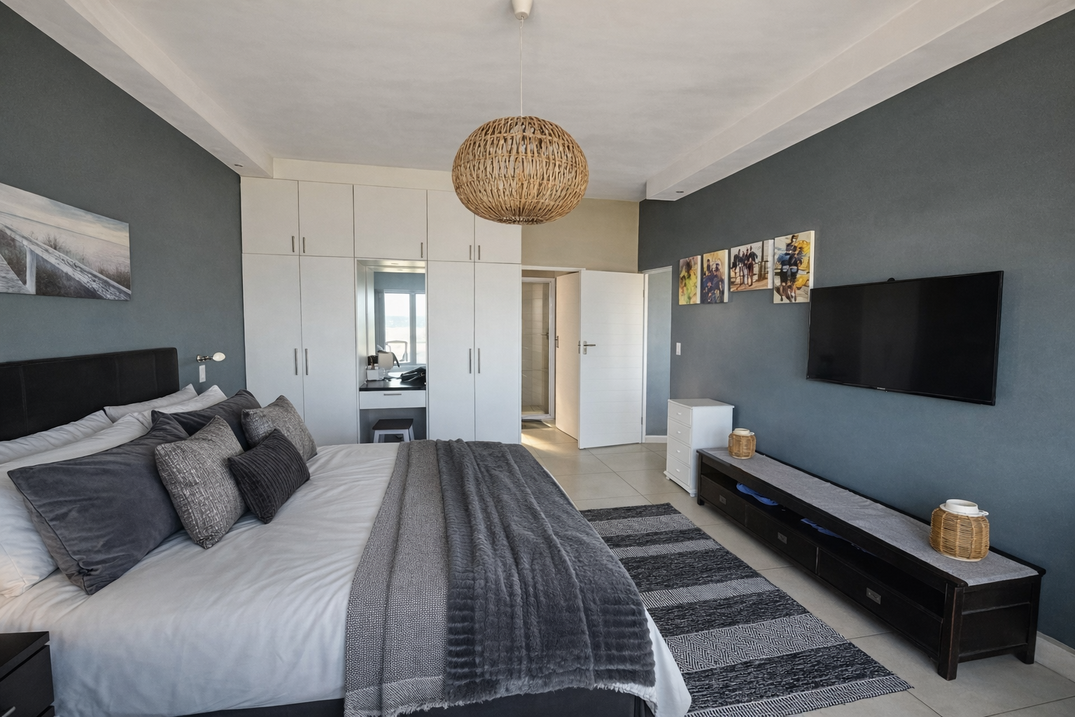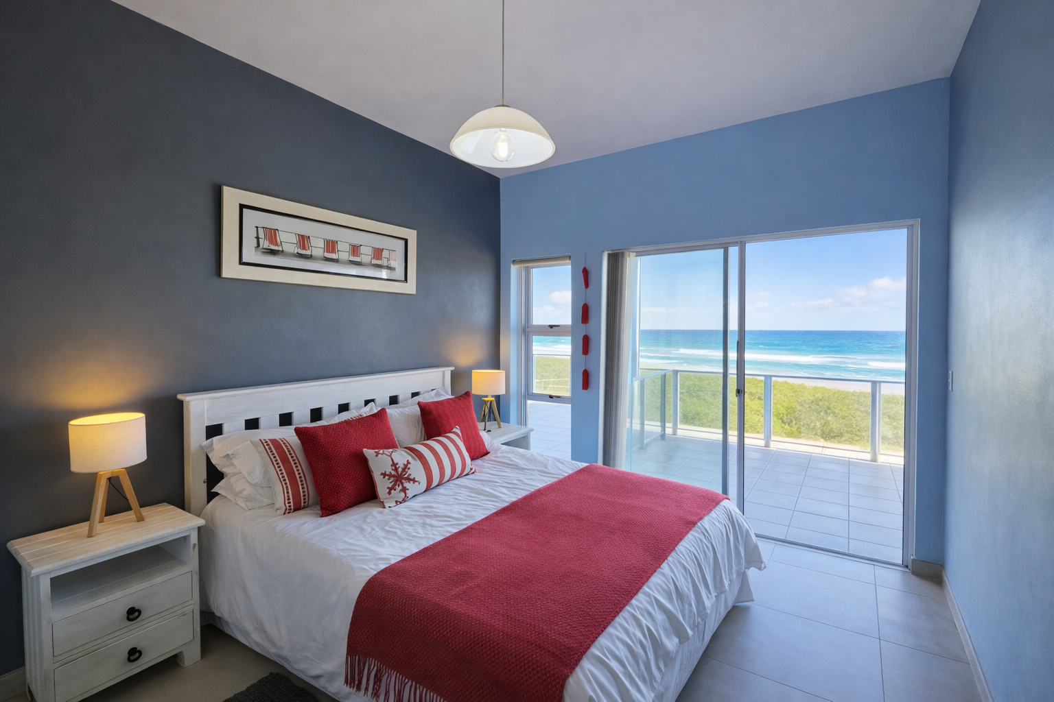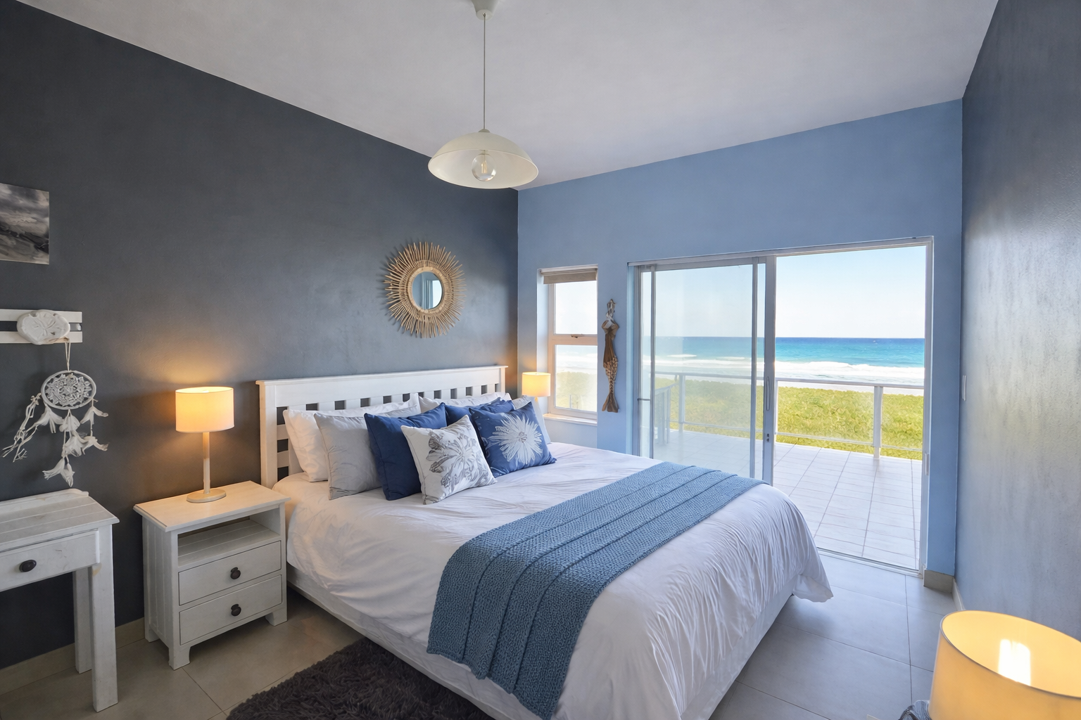 The luxurious main suite is a sanctuary of its own, opening onto a private balcony — your personal front-row seat to sunrise over the water.