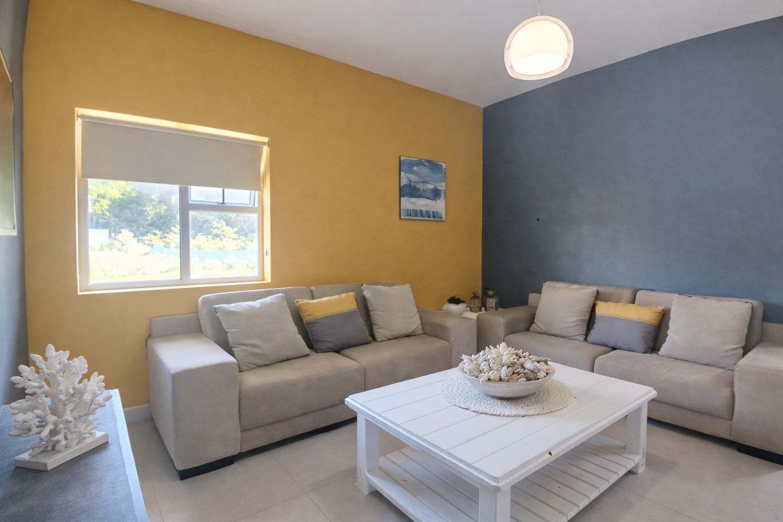 Four spacious bedrooms provide serene accommodation, complemented by two stylish bathrooms. A central living area brings everyone together — perfect for relaxed evenings, family connection, or quiet retreat.