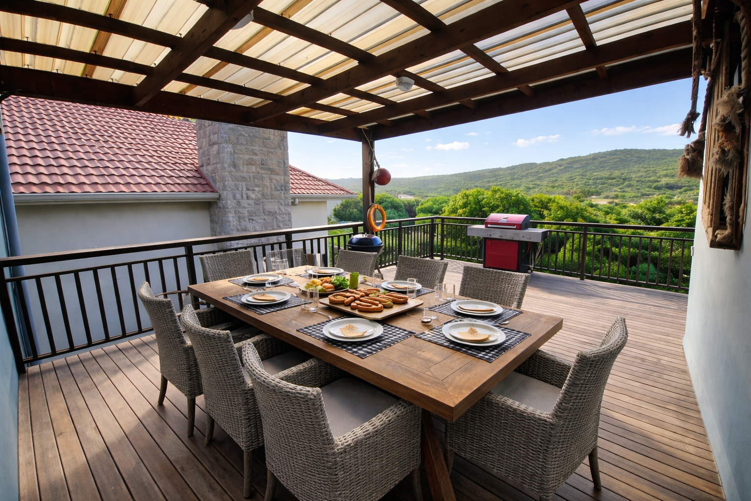 - Elevated wooden deck for outdoor relaxation