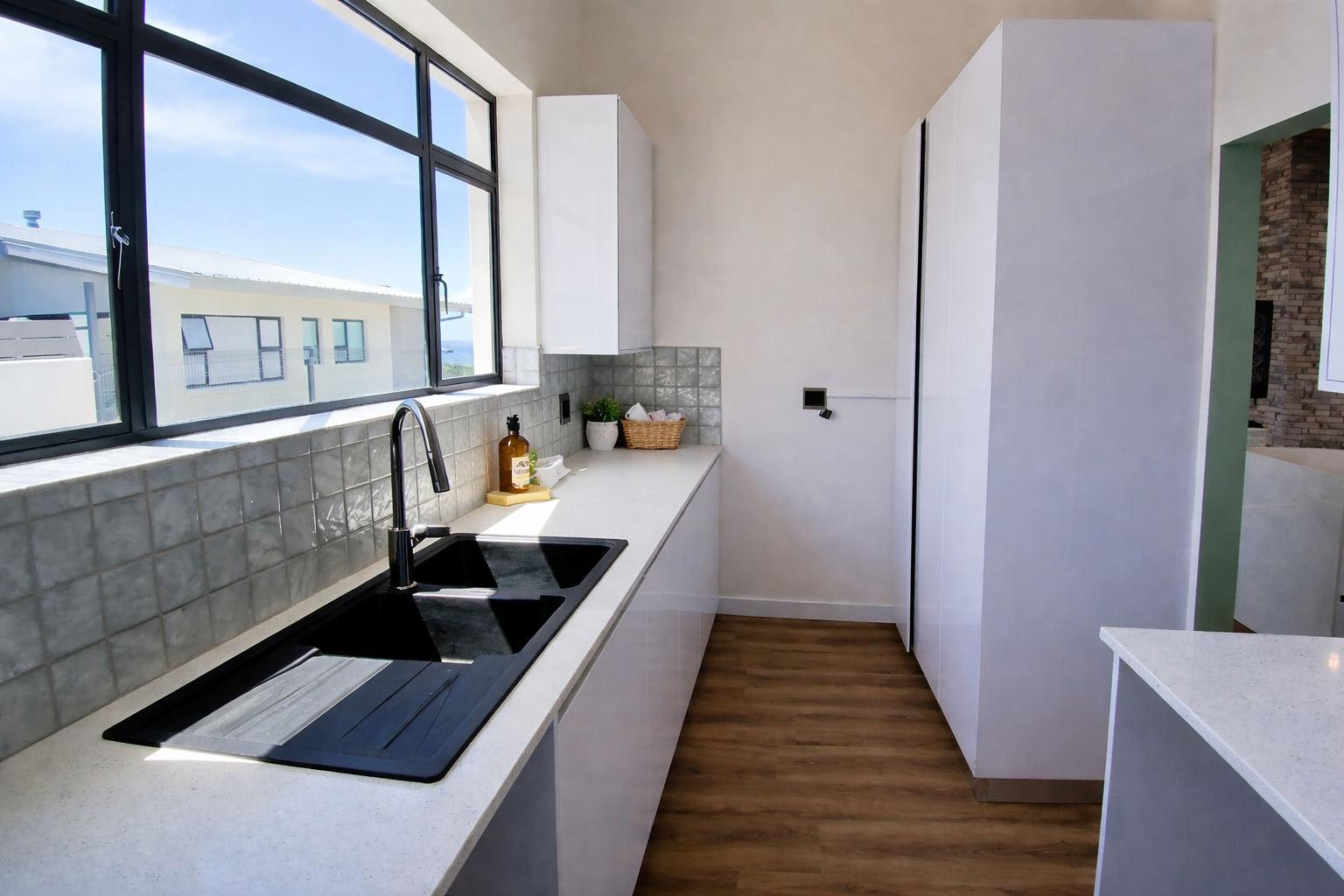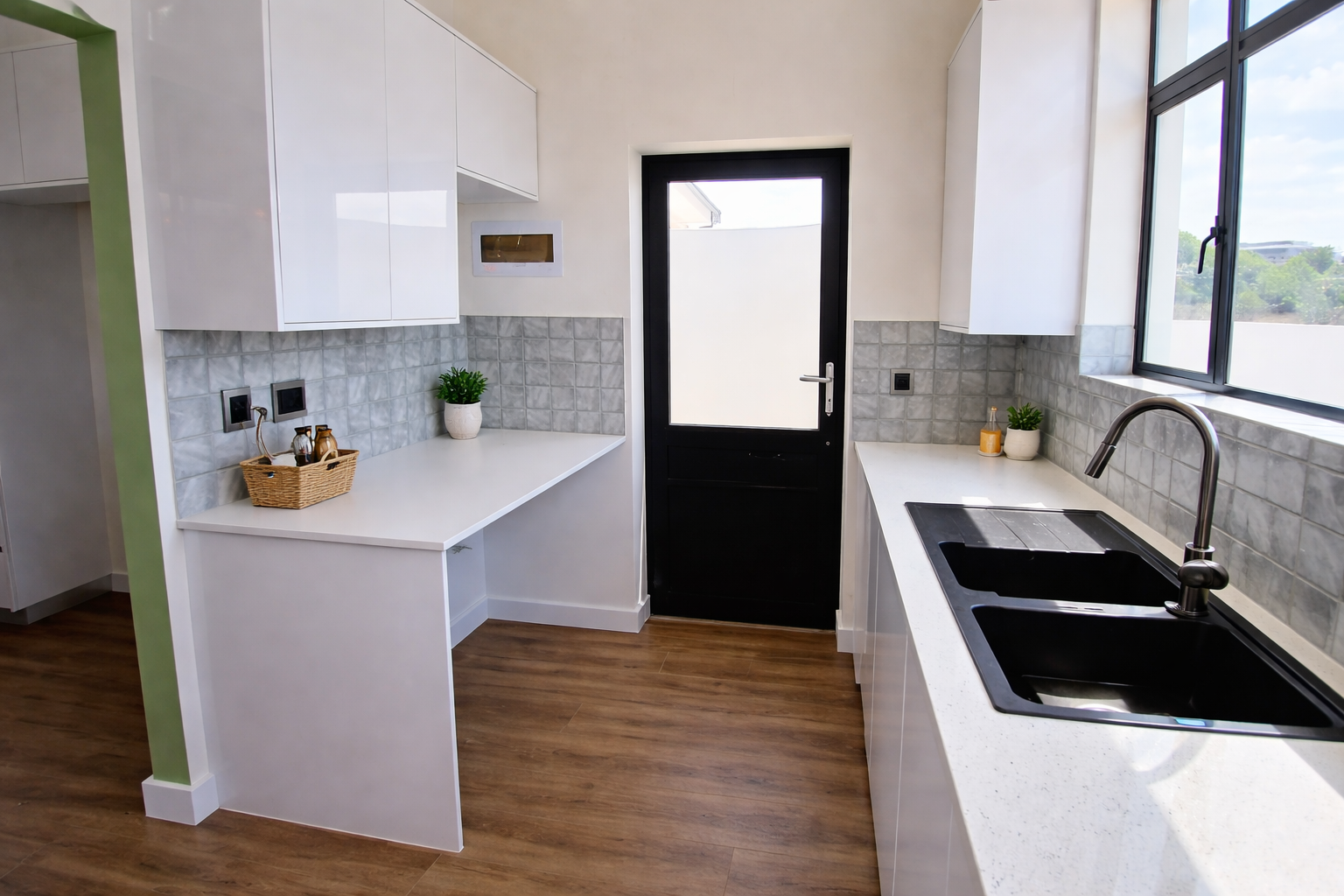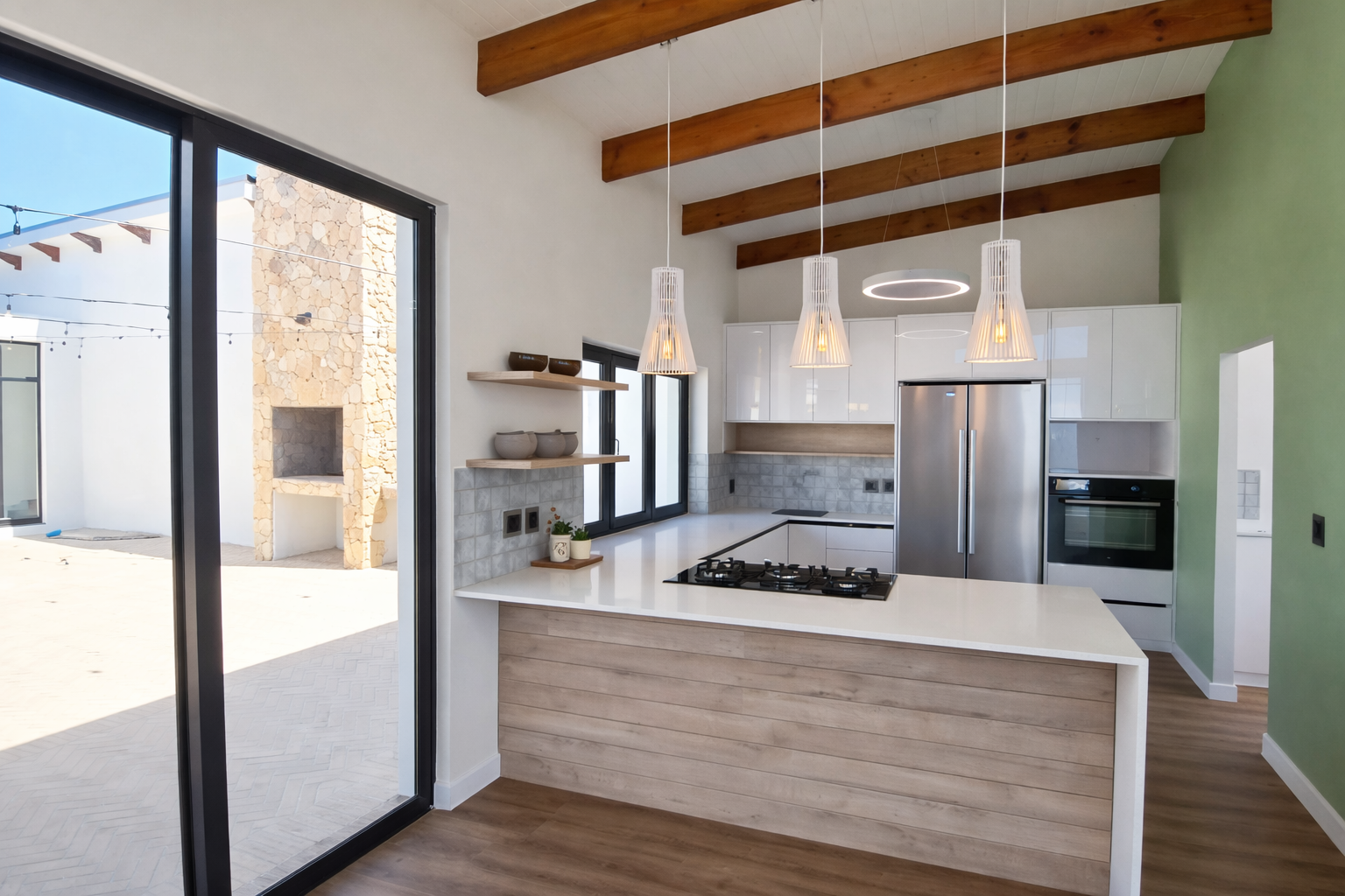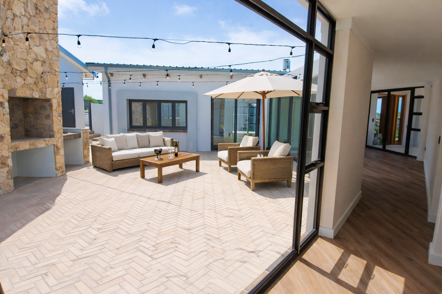 The heart of the home is the light-filled lounge and dining area, where large openings invite in natural light and create a seamless connection to the outdoors. The modern kitchen is both stylish and practical, complemented by a separate scullery that keeps the main living space neat and uncluttered. An indoor braai area further enhances the home’s appeal, providing the perfect setting for comfortable, year-round entertaining.
