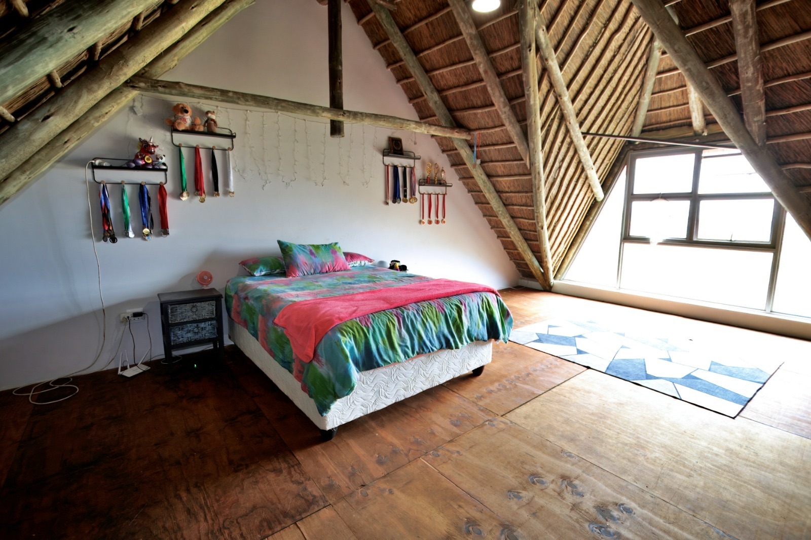 Experience peaceful country-style living in this beautiful and generously sized thatched home, situated on a sought-after wildlife estate where antelope and zebras roam freely – a true haven for nature lovers.