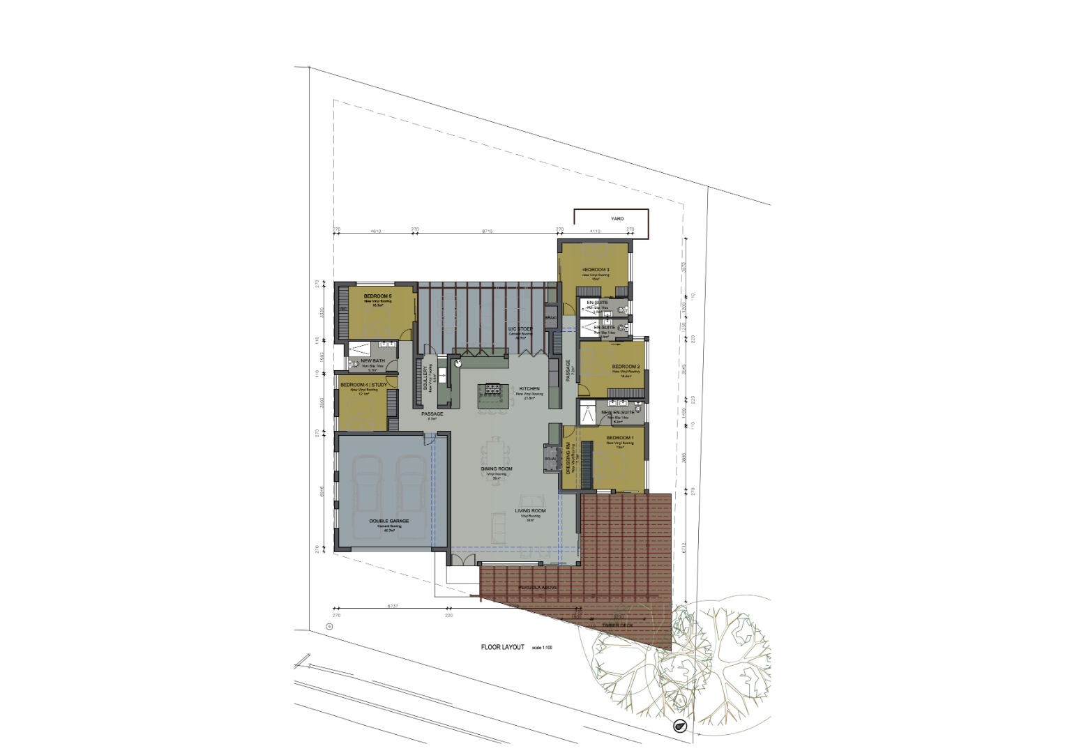 The layout includes four spacious bedrooms, four sleek bathrooms, and a double garage with additional storage space. Open-plan living areas flow seamlessly to covered outdoor entertainment zones, perfectly framing the serene natural surroundings.
